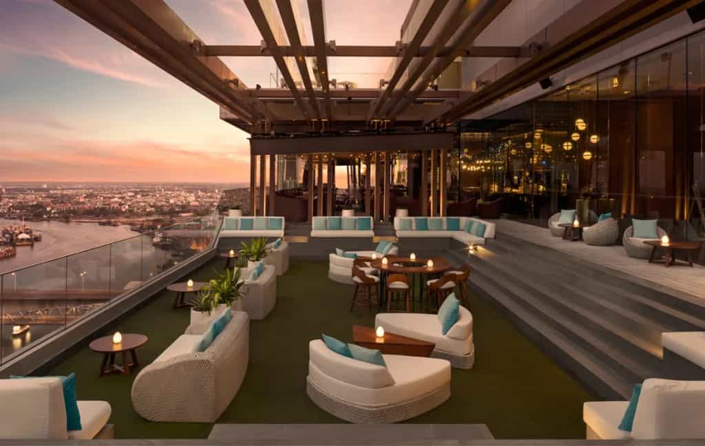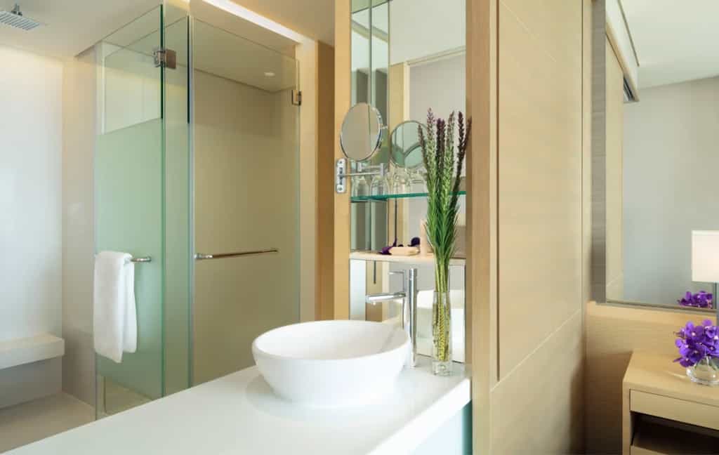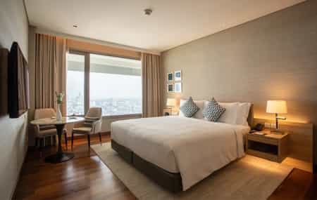 Avani has 250 rooms and suites, all of which are glossy but never overdone. Their most outstanding feature is the huge picture window with exceptional views of the city below. Inside, beds are draped in starched white linens and open-plan bathrooms are equipped with a powerful rainfall shower. The larger suites enjoy a bathtub as well. There are also two or three-bedroom options with a separate lounge and dining area, decorated in soothing, neutral tones and pops of purple flowers.