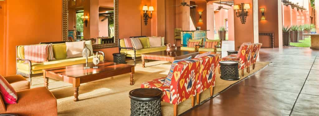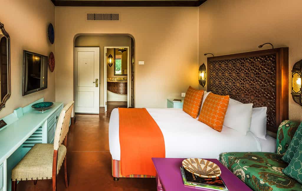 Enjoy relaxing in one of three types of room, standard, family or a suite. Spread over two floors, the 212 rooms all benefit from views of either the manicured garden or inviting swimming pool. The style is in keeping with the rest of the lodge with bright colours and patterns adorning the walls, simple comfortable furniture and a few of life luxuries such as a TV, a coffee station and en-suite bathroom, complete with a bath and shower.