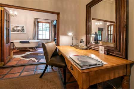 The guesthouse and gardens have been renovated sensitively, combining contemporary, elegant style with the property's French and South African roots. The main area has a gorgeously comfortable lounge, an ample kitchen in which breakfast is served and a sunny patio on which other meals (expect first-class cuisine) are taken. Take in the views from the patios, cool off in the salt-water swimming pool, or relax in the Jacuzzi or large garden area. You're made to feel right at home.