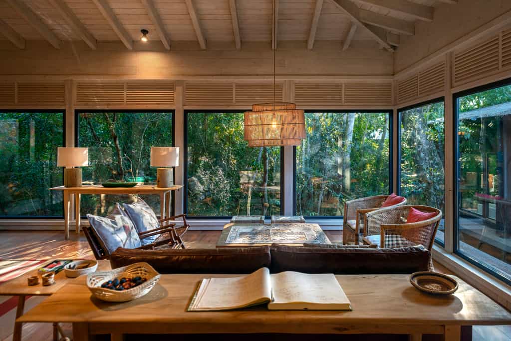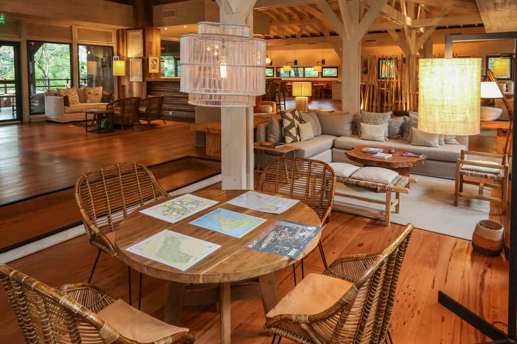 Beautiful basalt walkways connect Awasi’s buildings, all of which are hidden amidst the jungle greenery for full natural immersion. A spacious bar-meets-restaurant is housed in the main area, an open-plan, lofty-ceilinged cabin almost 10 metres from the forest floor, where plush sofas and wooden tables offer the perfect space for enjoying a glass of local vino and exchanging travel stories with fellow guests. The exquisite jungle-to-plate food showcases seasonal produce and is a delight to come back to after a busy day - and what better way to enjoy it than on the veranda under a canopy of lichen-lined trees? Jungle dining at its finest.