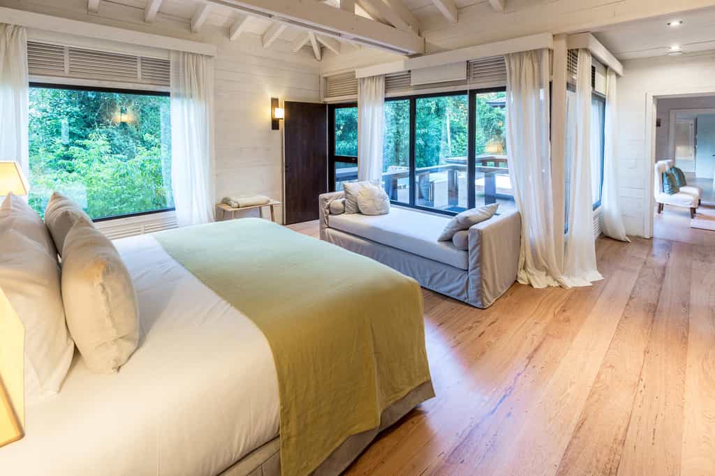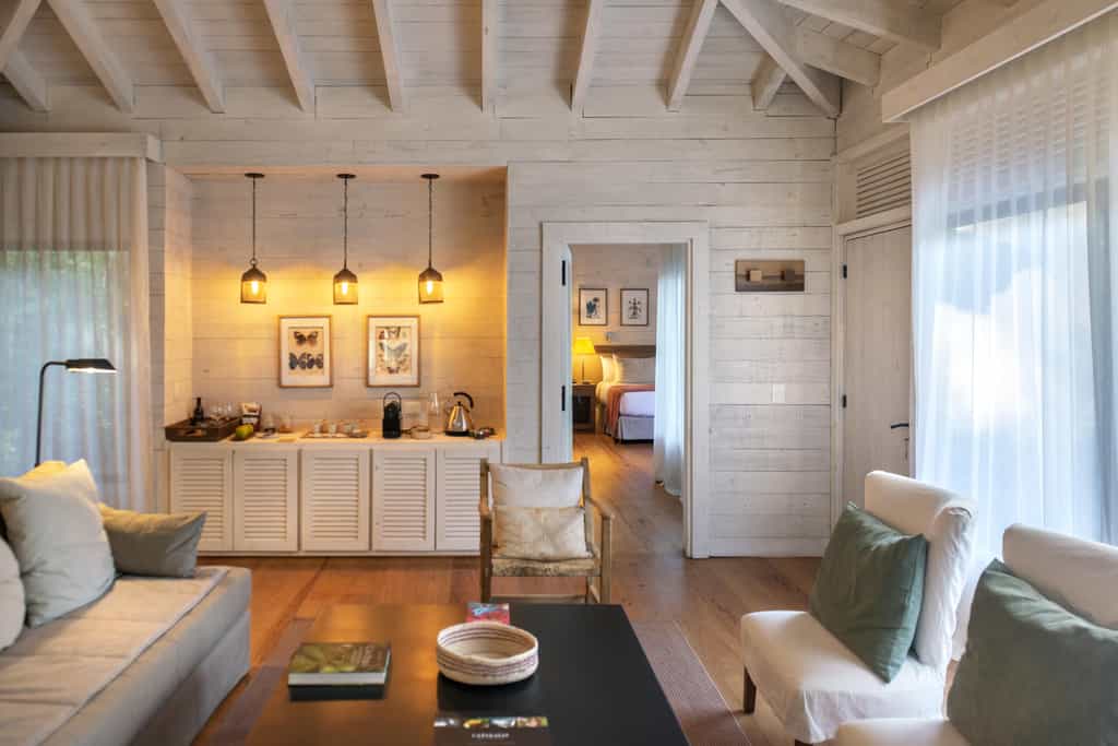 Providing the utmost privacy, Awasi’s 14 stand-alone villas are spread throughout the rainforest, each offering a heavenly refuge in the trees. Wooden walls, Guarani-infused décor and soothing hues of white and earthy tones complement the tranquil vibes of the surroundings, and windows flank most of the wall space for non-stop luscious views - and that's even from the bathroom. A large bathtub, walk-in shower, a coffee corner and living room are all part of the 100m2 space, and to top it all off, there's an outdoor deck with sun loungers and the private plunge pool.