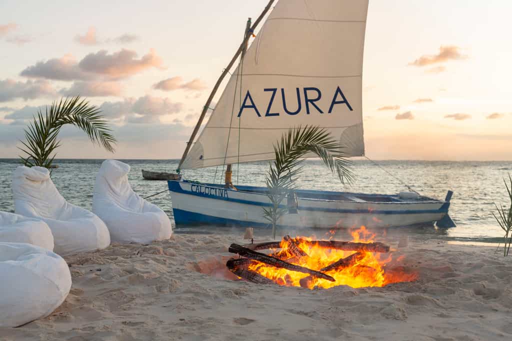 Meals at Azura can be enjoyed in all sorts of ways from dinner at the water's edge, picnics on a sandbar or back at the main restaurant where an array of freshly-caught seafood is served with wines flown in from the Loire Valley. You can also partake in the weekly beach BBQ under the stars! Enjoy reclining by the pool on four-poster day beds or indulge in one of the signature spa treatments like body wraps in Mongongo oil or a full-body massage that mimics the rhythm of a beating drum.
