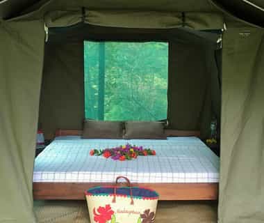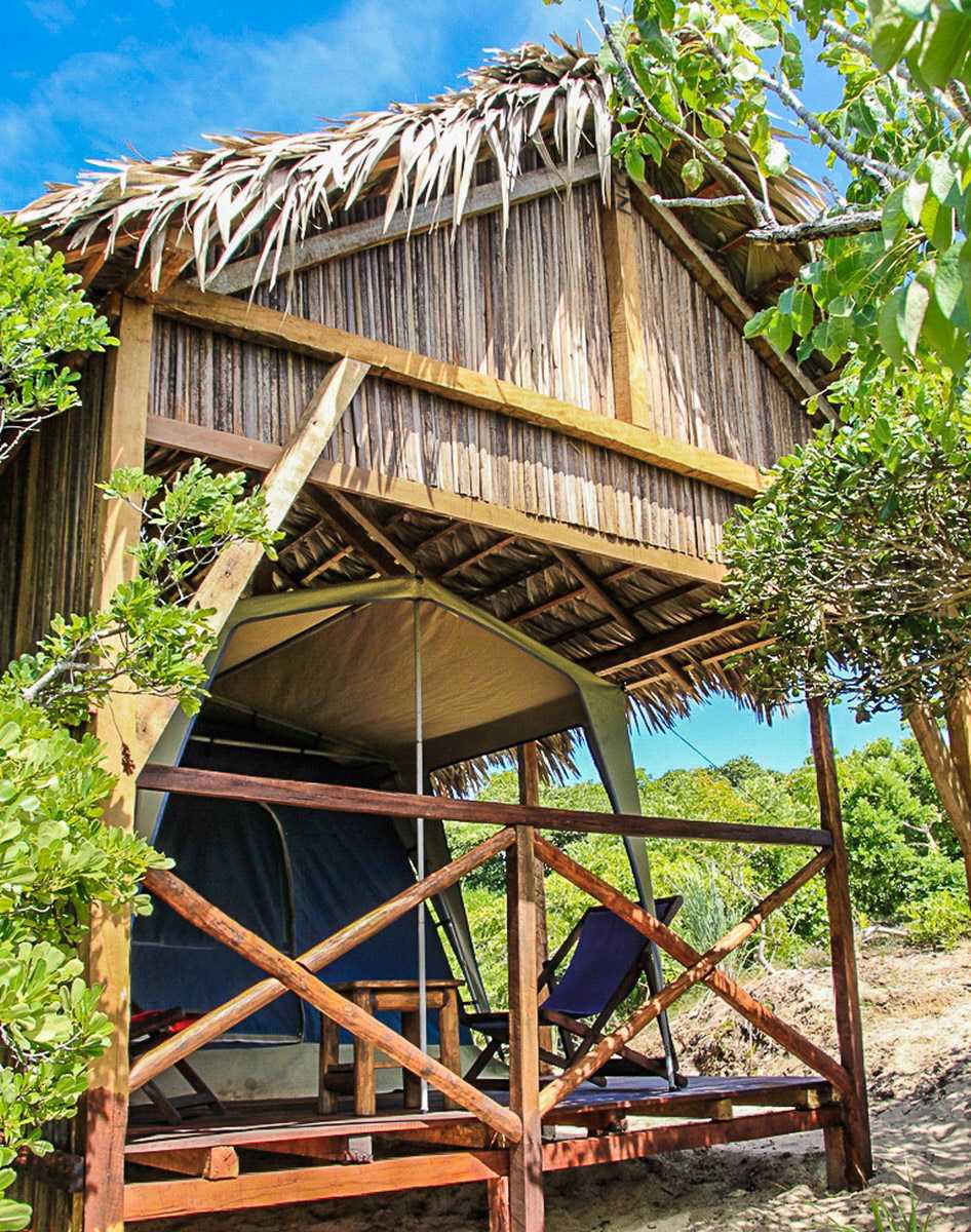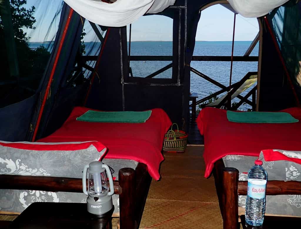 Accommodation is in eight thatched permanent tents on platforms, with very comfortable beds (the pillows were some of the best on offer at Madagascar's lodges). The showers and toilets, which are shared, are spotless. All the rooms face the sea.