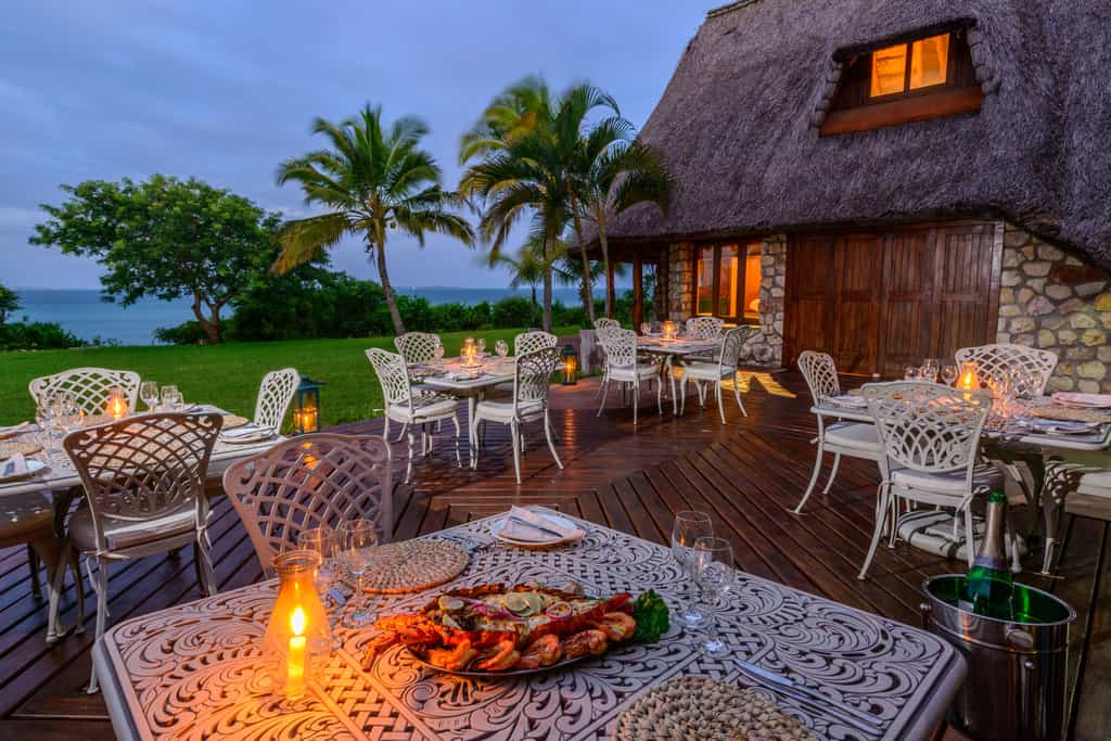 The main lodge areas is situated on a plateau overlooking the bay. Consisting of a thatched reception and communal lounge area leading to and fine la carte restaurant with rich outdoor wooden decking. Sun umbrellas are surrounded by manicured lawns, swaying palms and inviting views. The large and alluring infinity pool with swim up bar will keep you occupied for hours or you can descend down a series of wooden steps to the beach below.