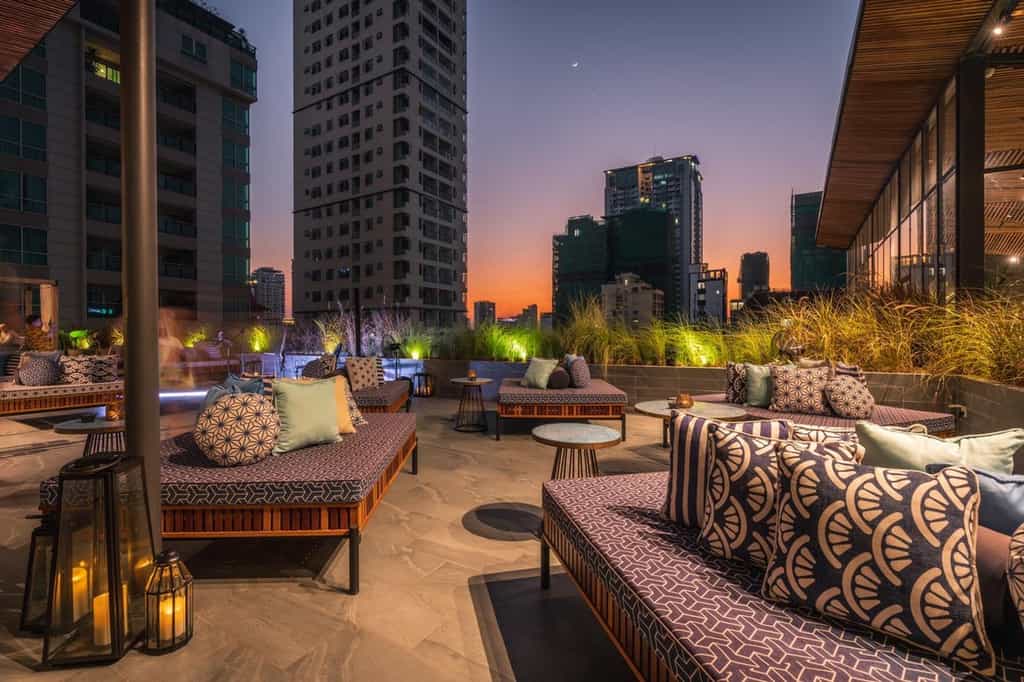 At the Baitong's centre is a greenery-laden garden with a hot tub that cascades into the infinity pool below, while a glass-bottomed pool sits in another area of the property. There are three on-site options for dining or drinks including rooftop bar, Lantern, where you can take in shimmering city views whilst sipping on craft cocktails. A fantastic breakfast is served on the 6th floor, which is where you'll also dine on the spectacular seafood of Kuang. The Baitong Cafe is just the spot to pick up some java.