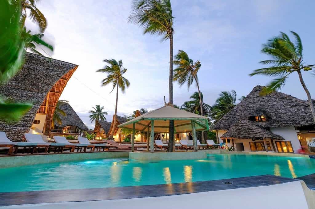 The Baladin Zanzibar Hotel is situated at the Central East Coast of Zanzibar in Michamvi, right at the Indian Ocean and at a private beach stretch decorated with Swing Sunbeds, Sundeck Chairs, Hanging Chair Table & even a Boat.. Located on the beach you will find the beautiful infinity swimming pool including a bar where you can relax the whole day long. The beach resort rises on the east-coast of the island, where the sea is protected by a reef, providing soft and calm snorkelling sessions in complete comfort and safety. Float in tropical turquoise waters, soak in the sun, and enjoy each special encounter. You can only love it.