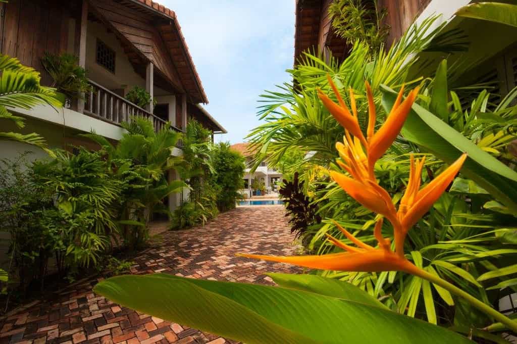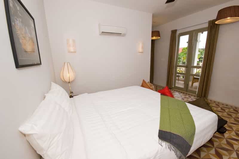 Bambu Hotel is comprised of four traditional buildings, which have 16 rooms between them. Each room has an antique king-sized bed, TV with a DVD library, and a private balcony. The rooms are decorated with geometric tiles, dark wood furnishings and colourful textiles. There are four suites, each with a large veranda with a sitting area and hammocks for an afternoon doze. The rooms have plenty of natural light through wide, glassless windows or French doors leading into the garden.