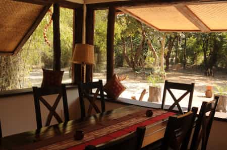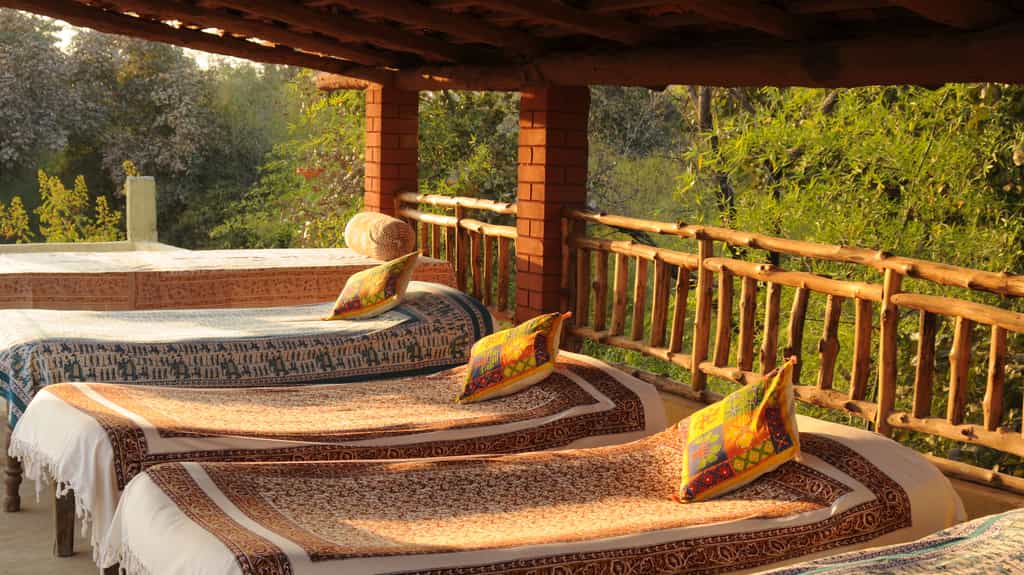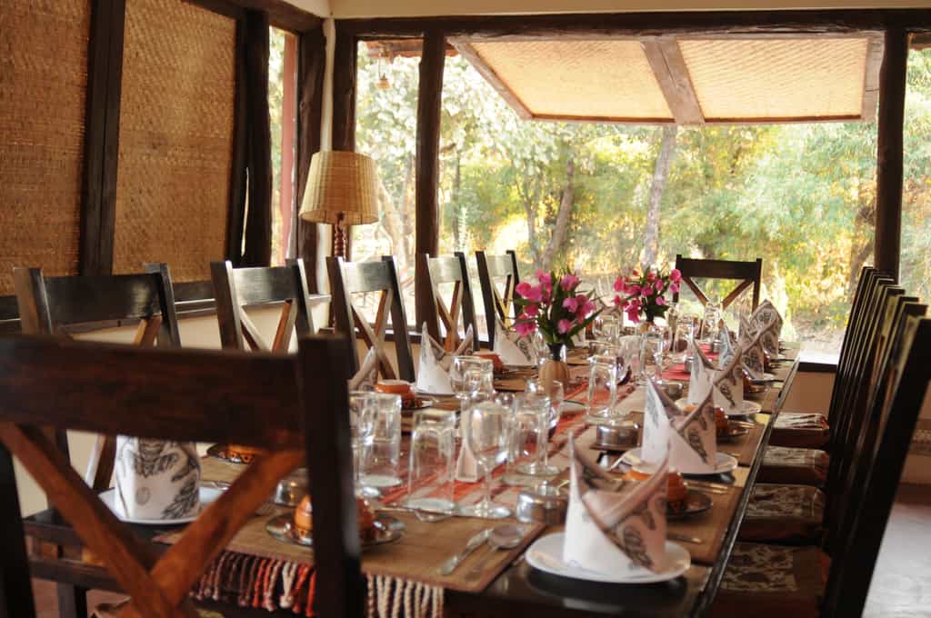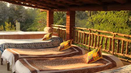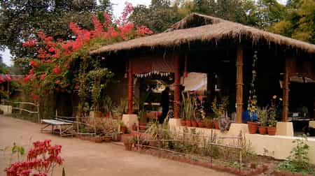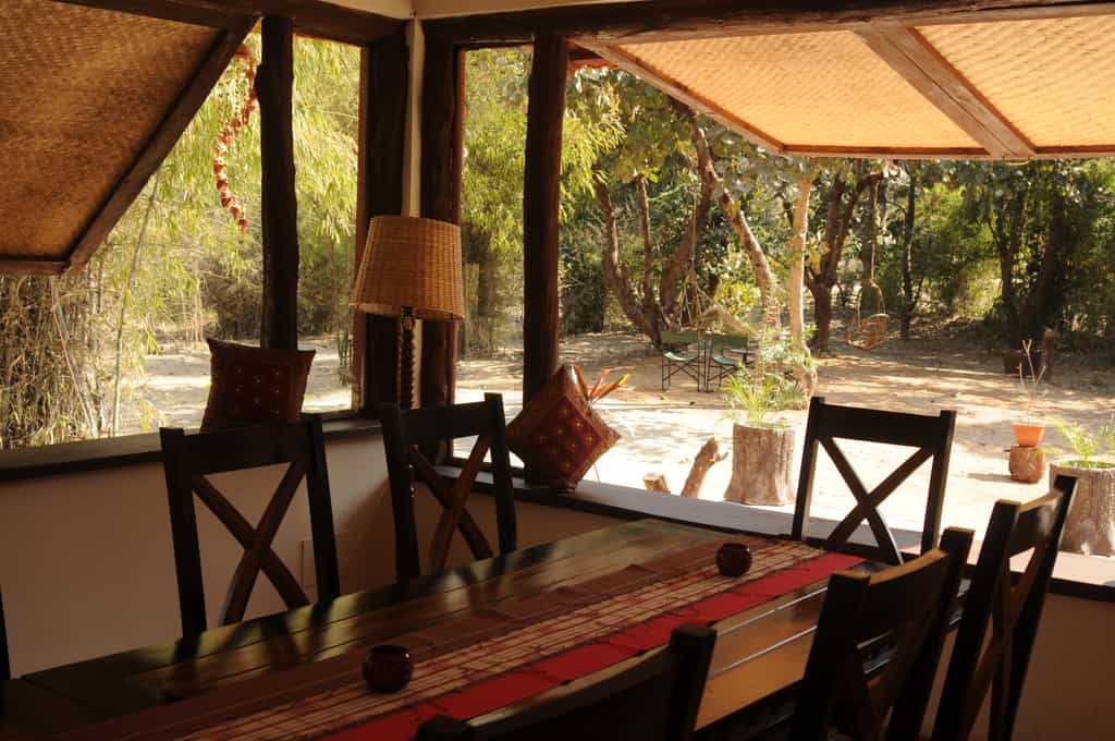 Located within walking distance of Bandhavgarh National Park's main gate, the jungle lodge has been developed on the theme of an Indian village, with thirteen thatched twin-bedded cottages around an inner courtyard. There are two separate villas with further accommodations of eight rooms. A spacious thatched dining room which serves home cooked Indian food and Continental cuisines, becomes the centre point of activities like campfire performances, lectures and star gazing. The lodge has set strong principles of being environmentally friendly and every aspect of its development and operation is sensitively synthesized towards nature conservation. Since it is located close to Bandhavgarh National Park and to the entrance gate, (near Tala village) guests can listen to the sounds of the Jungle right in their backyards! In the morning you wake up to a symphony of bird songs, while at night you can often hear the alarm calls of deer, which alerts you to a tiger on the prowl! A lot of fruit trees and bushes have been deliberately planted to attract a variety of butterflies, birds and insects. Due to such close proximity to the Bandhavgarh National Park, Spotted deer and the Langur Monkey can often be seen in and around the Lodge.