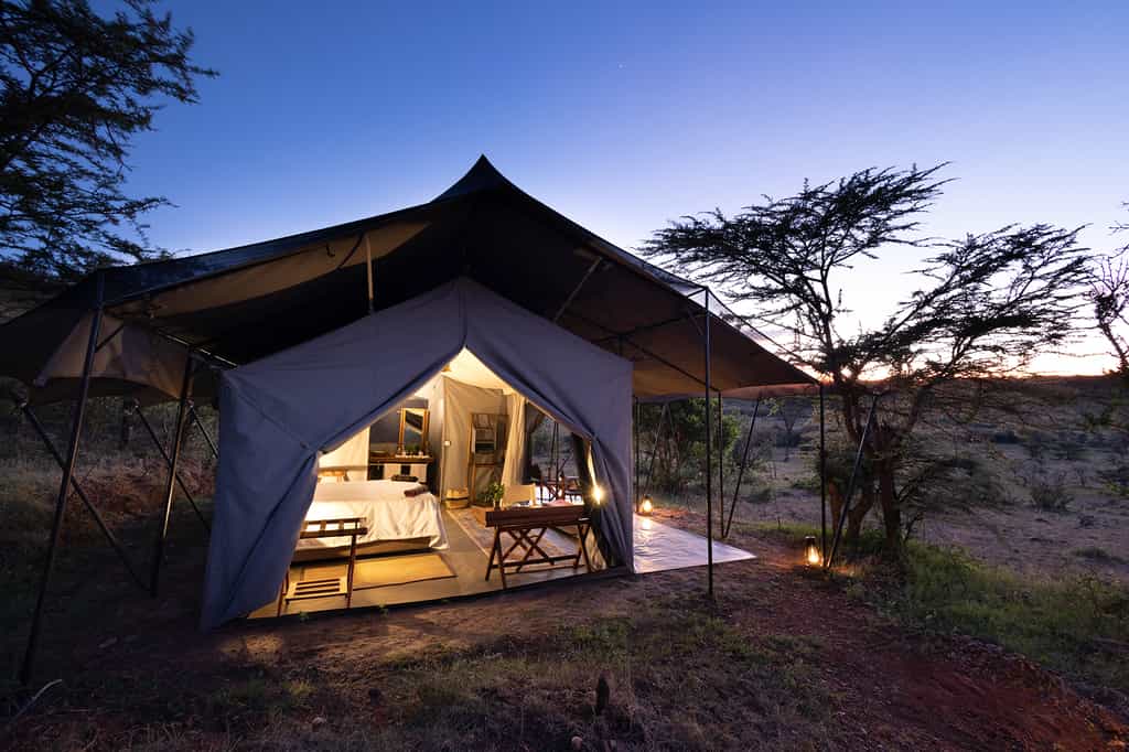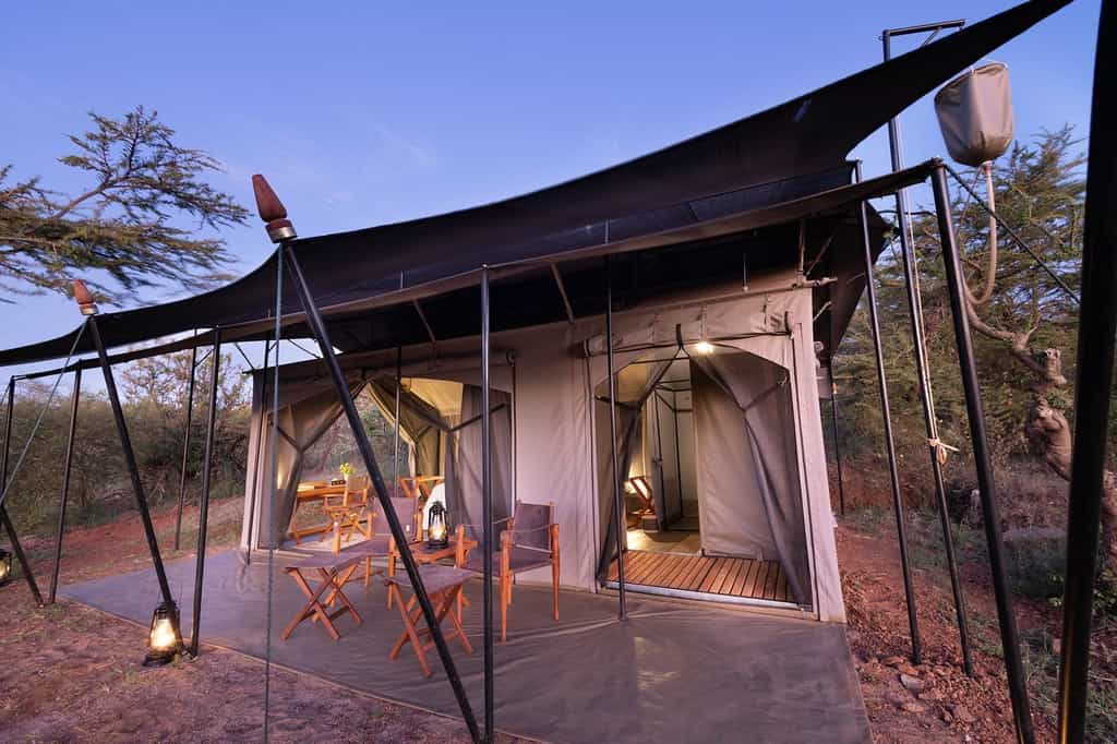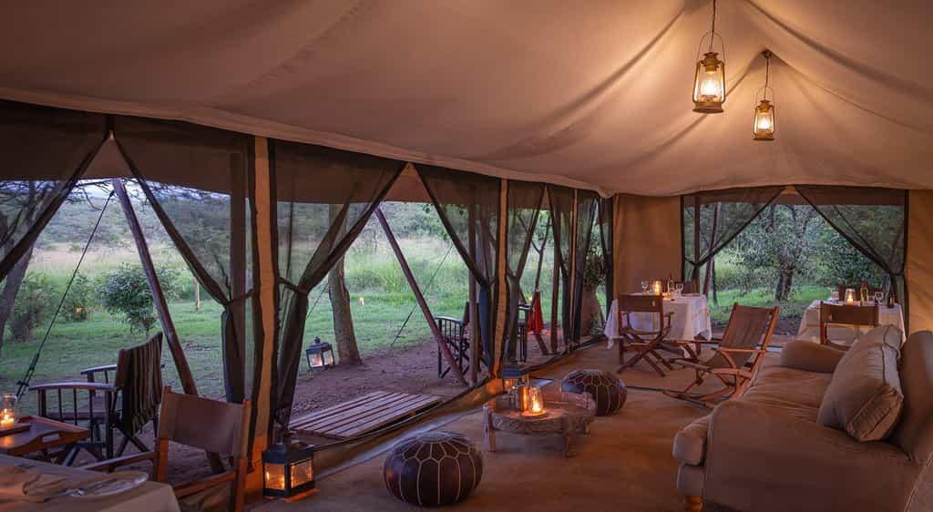 Basecamp Wilderness is a nostalgic tribute to the safaris of the early explorers and safari pioneers. Free from artificial luxury and modern disturbances and providing the perfect escape close to nature with optimal tranquillity and stunning sunrise views, Basecamp Wilderness is how safaris and safari camps were meant to be. Tucked away deep inside the “Saddle Valley” in the heart of Mara Naibosho Conservancy, one of the most beautiful and important wildlife areas in Kenya and the centre of a successful conservation experiment led by Maasai landowners and investors, the 5 tents allow for complete privacy and ultimate views of the savannah. The dining tent offers a romantic sitting area with comfortable leather chairs, carefully selected reading materials and a vintage gramophone It is just you, the Maasai, the wildlife and the stars.