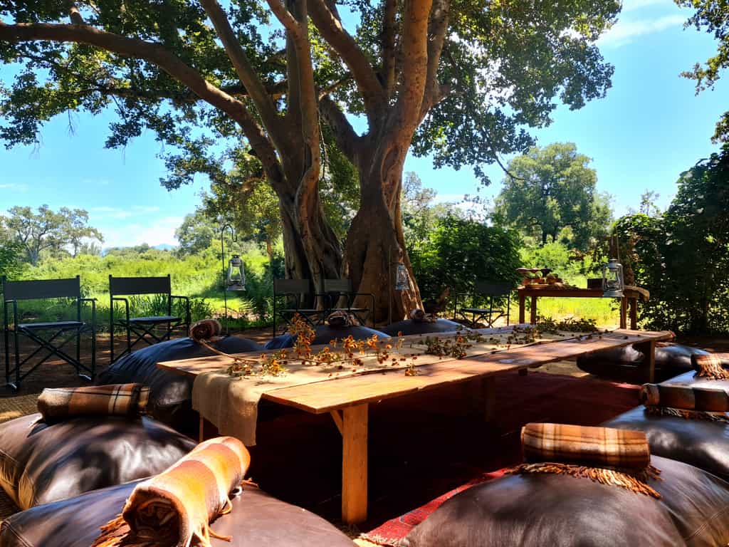 The main area offers fabulous views from river and floodplains to the horizon. The interior decor is pretty fine too, a sleek contemporary take on the old thatch-and-wood lodge design. Seating in the large open-plan lounge is arranged for intimate chats (our favourite was the fireside corner), the bar encourages sociable chats, and the dining room is glam. Outdoors, the decks offer shaded seating, an infinity pool, and a fire pit where evening drinks and stargazing are a camp ritual.