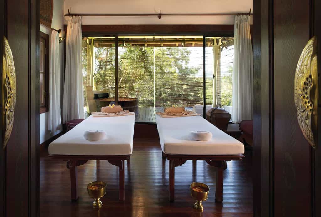 The 34 rooms are whitewashed, elegant and incredibly calming, each beautifully clad with rosewood floorboards and a fluttering, organza-trimmed four poster bed. Private balconies and terraces have cushioned day beds, and views of the gardens, the pool, or that wonderful mountain. The spacious bathrooms have tubs for soaking in at the end of a long day and there is a lovely selection of soothing toiletries to properly indulge.