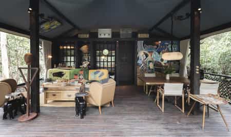 In locations specially chosen over seven years, the collection of luxury tents are perched over waterfalls or atop boulders. As stylish as they are 'wild', the tents are furnished with ornate wooden beds, funky animal-print couches and even a tin bathtub on the terrace. Explorer-chic accents like old school lanterns and trunks are dotted around, and individual touches (and names like the First Lady Jackie Kennedy's Tent) include themed murals and handcrafted decor. The largest tent is accessed by wooden walkways over the rapids with two bedrooms - plus the option of a glass Jungle Capsule sleepout.