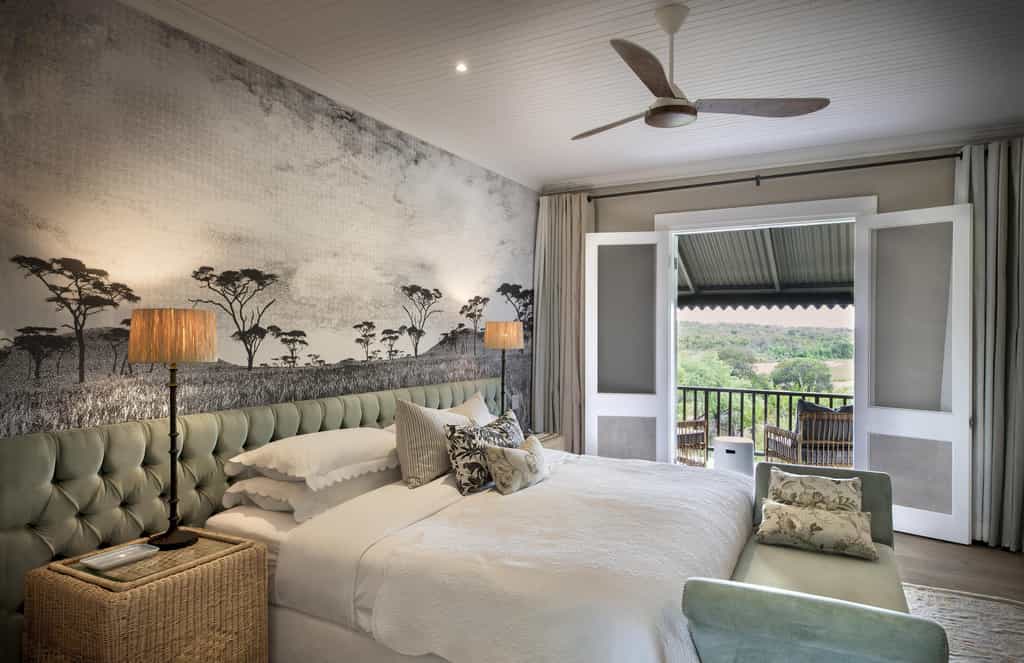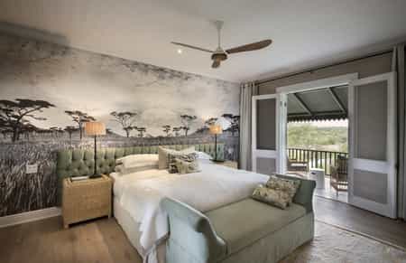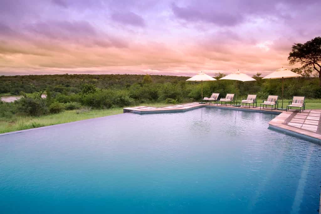 Kirkman’s Camp’s communal areas fall within the historic Kirkman’s home. The refurbished, elegant central lounge and dining spaces are very well-appointed with neutral colours, comfortable furniture and significant artifacts from a bygone era. Each different room holds a different set of priceless treasures, whether it is a buffalo mount, an old chest high fireplace or a collection of antique rifles, there is no shortage of character here. Heading outside there is a wrap around terrace, green rolling lawns, a large inviting spillway swimming pool and boma (traditional outdoor enclosure) for evening meals.