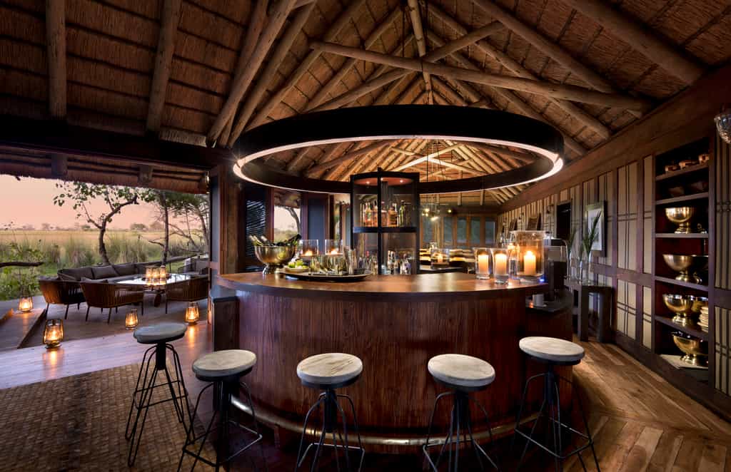 Thatched roofs and teak decks combine to present understated classic elegance. An indoor dining room, expansive outdoor deck and a large swimming pool create several interconnected areas to lounge and play. Sit in the shade of an enormous jackalberry tree and take in the uninterrupted view of the lagoon and floodplains beyond, cocktail in hand. Sink into the plush sofas and chairs in an airy lounge that is cool in summer and warm in winter with its large antique fireplace.