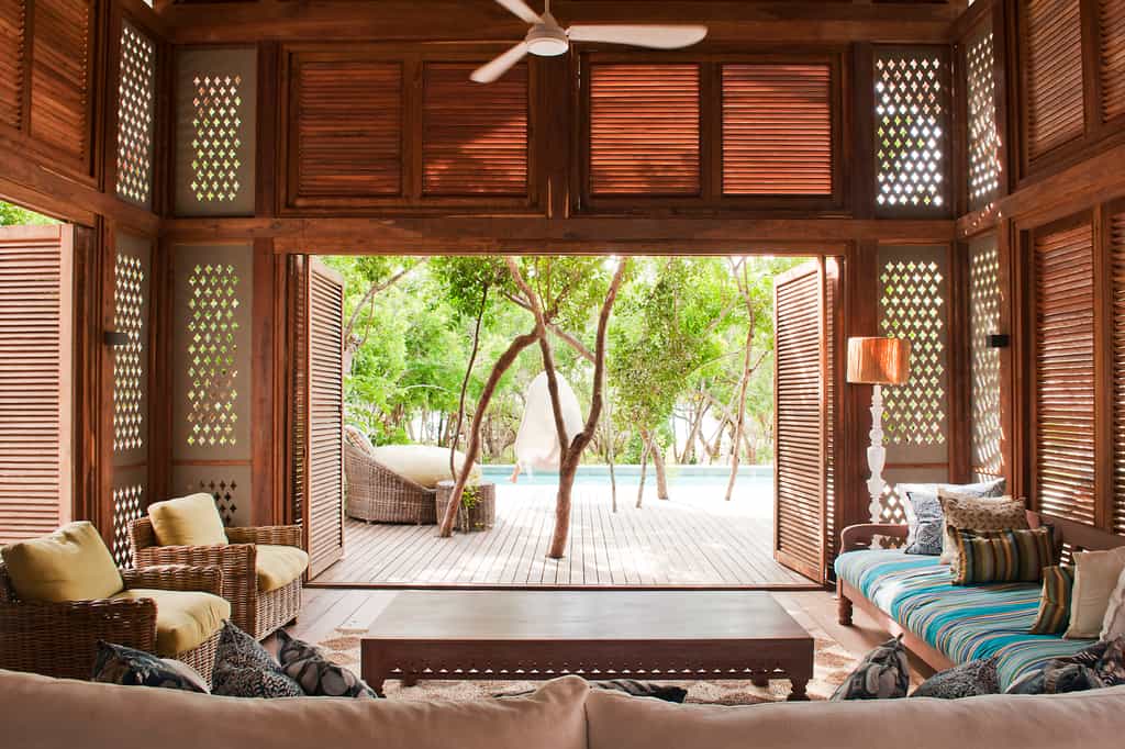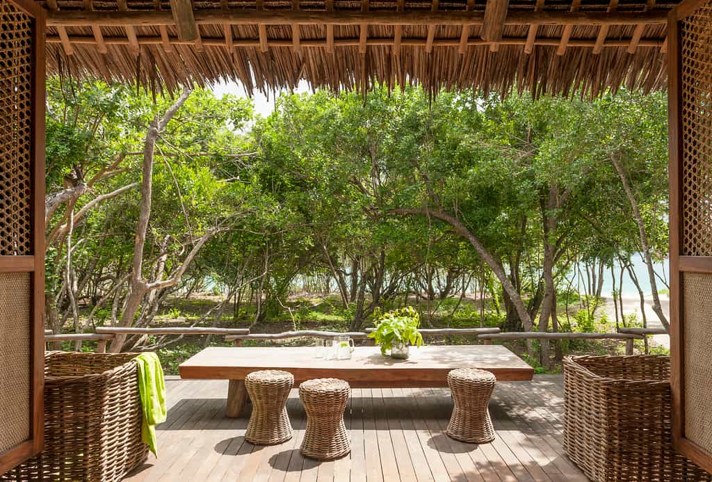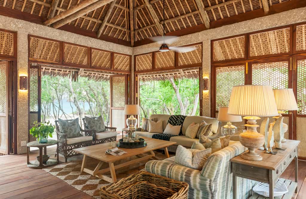 The communal area of each villa is different, giving each five-star bungalow it's own unique flavour. What they do have in common are the extensive outdoor decks with plenty of communal seating, great for morning cups of tea together. Grand dining room tables take centre stage, indoors and outdoors, and one can commend the designers for pulling off unique spaces for togetherness and for solitude. The decor throughout marries the earthy and natural inspirations from the beach and island-life with nouveau chic. It’s exquisite.