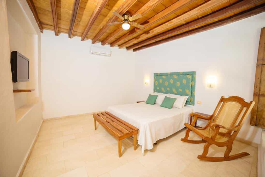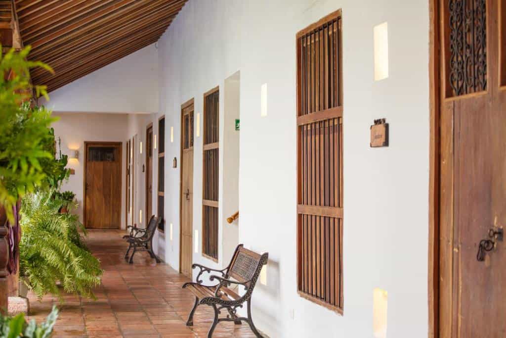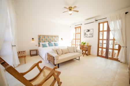 With white-washed walls and windows overlooking the courtyard, each room is fitted with a double bed (or larger) with orthopedic mattresses. They are simply but effectively decorated, and super spacious. The largest is the top-floor Deluxe Suite, which enjoys its own balcony, while the Mansard Suite is distinguished by its original wooden ceilings and has no neighbouring rooms. The hotel also has duplex rooms, which are suitable for four people. The bathrooms are neat with huge showers and all the rooms have aircon – it's vital in such a hot area.