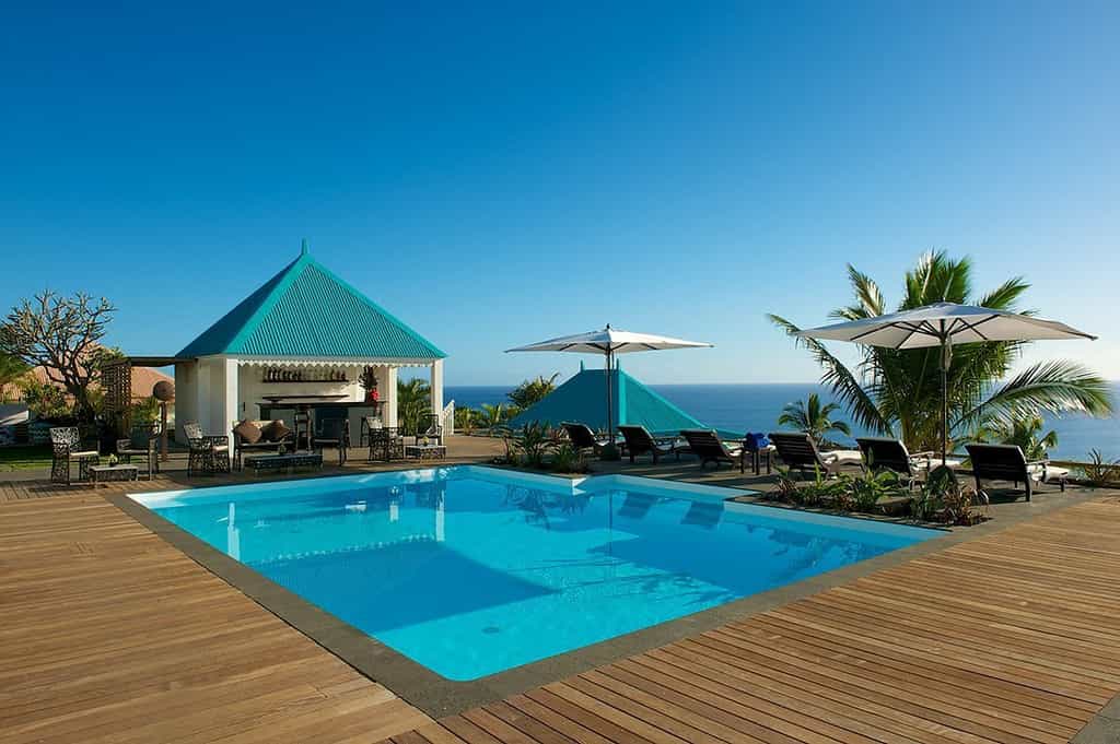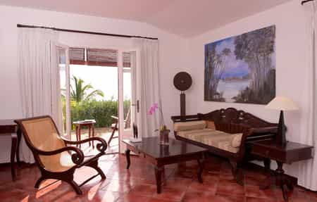 Surrounded by tropical gardens, The Blue Margouillat Hotel beautifully combines indoor and outdoor living. The restaurant, bar and lounge areas all lead out to a spacious deck and the large outdoor pool, where there are plenty of crisp white sun loungers waiting to be lounged upon. A beautifully-furnished library boasts an excellent collection of travel books, and the owners' love of art is on display with a rich collection of paintings, sculptures and ceramics by local artists, waiting to be admired. There's also a souvenir shop and a wellness spa on site.