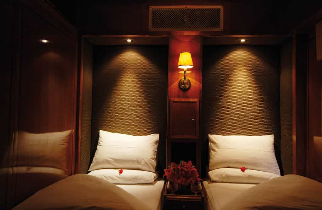 All suites on the Blue Train are clever spaces that transform from bedrooms to comfortable living rooms by day. The DeLuxe Coaches offer more compact luxury – each car has five suites with twin beds (one has a double bed and a small bathtub). All have air-conditioning, underfloor heating and an entertainment system. The larger Luxury Suites have double or twin beds, a bathroom with tub, a TV and entertainment system, Blu-ray movies and a phone to request in-suite service.