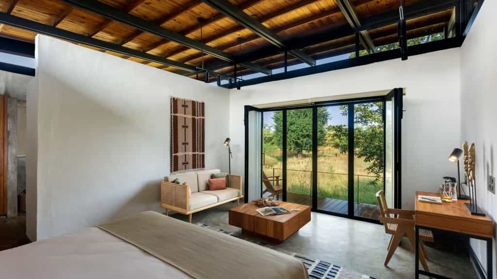 Tucked amidst the lush and rustic locale of Dhapada village, Bori Safari Lodge is a charming resort in Madhya Pradesh that offers the perfect escape from the hustle and bustle of everyday life. Soak in the raw beauty of nature as you stay in this village lodge located near the Bori Wildlife Sanctuary, nestled amidst a 7.5-acre farmland estate. They offer you a complete experience of village life while keeping in mind the comfort of a contemporary traveller. There are 8 well-appointed ensuite rooms, beautiful dining spaces, a spa, a plunge pool and a library at the lodge.