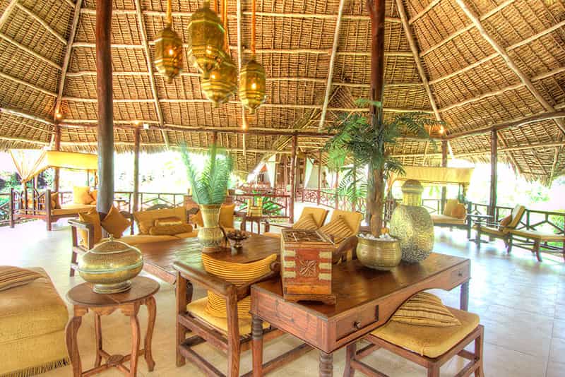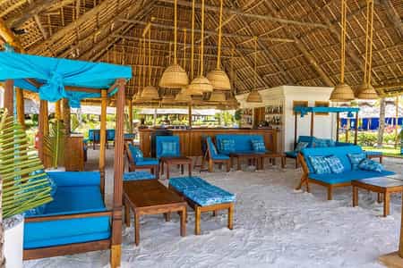 Built on the whitest sand and set amongst palm trees the main area is under a tall thatched roof. There are plenty of places to relax with a refreshing cup of tea or favourite cocktail and just watch the beach life go by. Just behind the main area is the Frangipani Spa enticing guests to experience a range of specialist therapies. On the beach front is the water sports centre with hammocks and sunbeds if you just wish to observe the various activities.