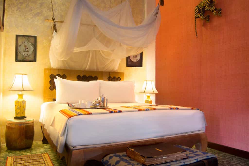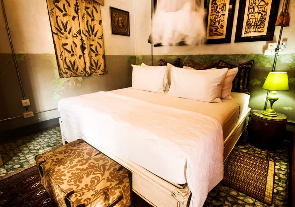 Nestled in the colonial heart of Battambang, Bric-à-Brac is a small and intimate hotel where you are greeted with cold towels and a special warmth. The hotel has just three rooms on three floors, each offering a sumptuous bed, pure linen sheets and hypoallergenic down pillows. Delivered to your room each morning, in bed or on the balcony, the classic French-style petit déjeuner breakfast includes artisan jams, coddled eggs in butter and Khmer pastry. The restaurant has opens from sunset, offering alfresco cocktails and French wines by the glass, plus home-made potted pork rillettes maison, and fine cheeses.