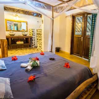 Pangalanes Channel Hotel – Bush House is a small Ecolodge located in the east coast of Madagascar, on the Pangalanes Channel and more precisely on Ampitabe Lake: 3rd largest’ of the Pangalanes Channel. A unique blend of nature offers both marine worlds within walking distance. Inland, there is a beautiful and quite clear water lake with a sand beach; while only five kilometers behind a narrow stretch of land separates the lake from the wild Indian Ocean!