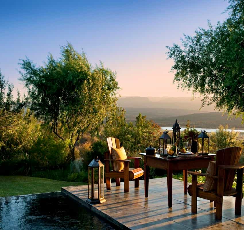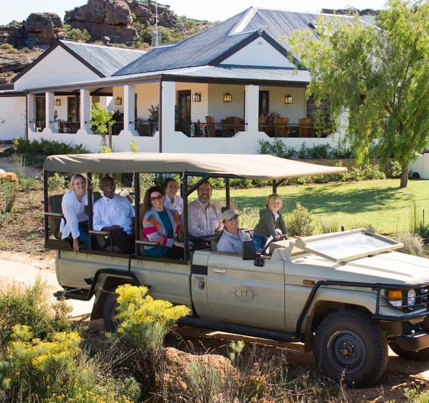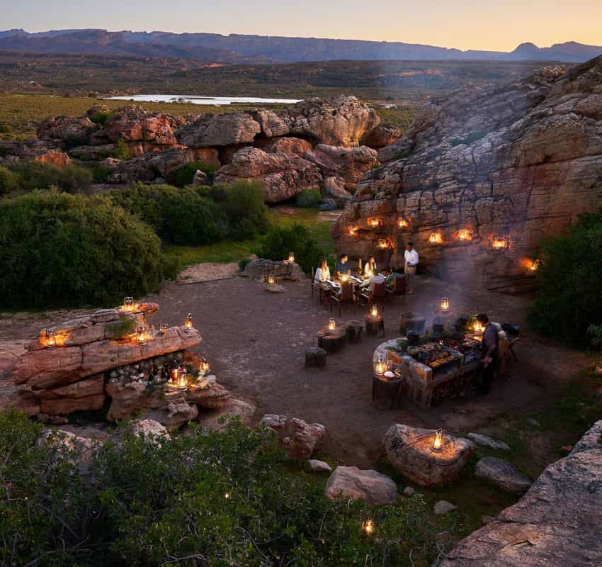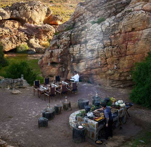 Your personal guide will lead you to ancient San rock art sites hidden among the sandstone – some paintings date back 10,000 years, and the stories behind them are fascinating. Afternoon nature drives reveal bontebok, eland and one of the world's largest private herds of Cape Mountain Zebra. Canoe across the dam, mountain bike through the fynbos, take a dip in crystal-clear rock pools, or simply watch the stars emerge from the deck. For the less energetic, it's equally valid to do absolutely nothing at all.