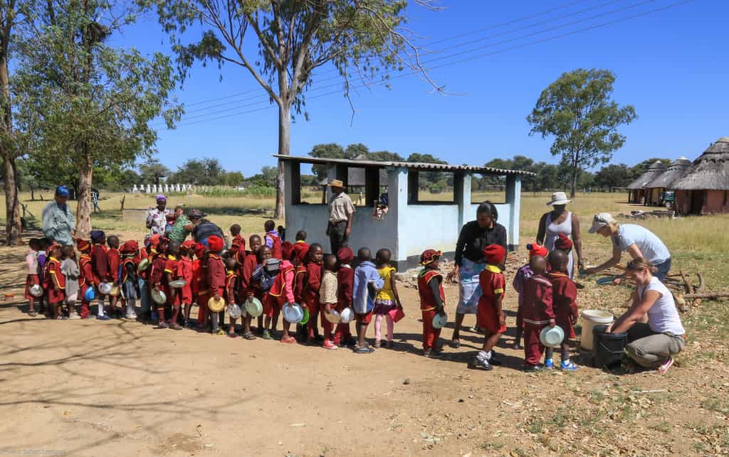 The activities available to you at Camelthorn will immerse you in the ecological and cultural richness of Hwange. The focus of your game viewing experience centers around the water holes, both near camp and in Hwange National Park itself. Around the camp, petit water sources dapple the forest floor - more like bird baths than a water hole - these attract antelope, birds and all manner of smaller wildlife. Game drives typically ramble from one water hole to the next and if the game viewing is good, will stay and enjoy sightings for a decent length of time. Walking with a guide here can be very rewarding - if only for the chance to switch off the engine and tune into your senses. These walks give you the chance to follow in the footsteps of some of the Big Five and Camelthorn lodge prides itself on offering its guests the unique privilege of walking with rhinos. While on foot, you can also duck into an underground game-viewing hide, which gives you a safe way to get close to the animals without disturbing them. As you watch, you will see animals ambling to and from the water hole, just meters away. To complement your game viewing activities, you also have the opportunity to contribute to the local community. Whether delivering food to attendants of the National Park, visiting the children at a rural school, or learning about the anti-poaching efforts of the Cobra Community Wildlife Protection Unit at Ngamo Wildlife Sanctuary, these experiences are sure to enrich your experience in Zimbabwe and give you deeper insight into the communities living there.