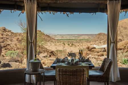 Early morning game drives in search of the desert-dwelling elephants, which are elusive but the guides know the area and the animals' movements so well that the effort is invariably successful. Hike in the ancient surroundings of the ancient Aba Huab River or explore Twyfelfontein, Namibia’s first World Heritage Site. On the road to Brandberg are the Organ Pipes, a distinctive series of dolerite pillars that have been exposed by erosion.