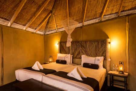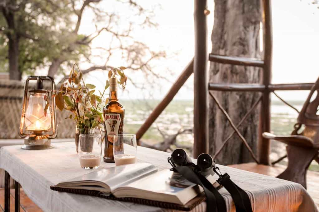 A large, shaded wooden deck sits on the bank of a wide lagoon in the Linyanti River, with sensational views across the floodplain towards neighbouring Namibiaʼs Caprivi Strip. Mealtimes are relaxed, with hearty dishes served at simple dining table on the deck, and a few plush couches are arranged along its back. The set-up is plain, but the environment and the sweeping views are definitely not. In the evenings, gather around the water's-edge fire pit for a companionable chat.