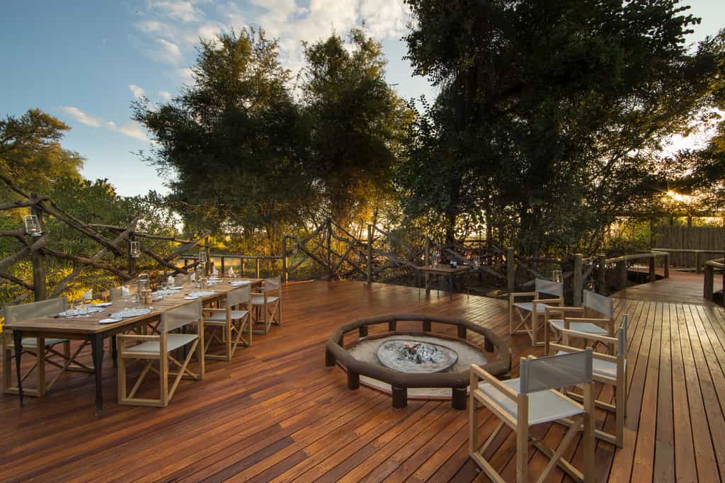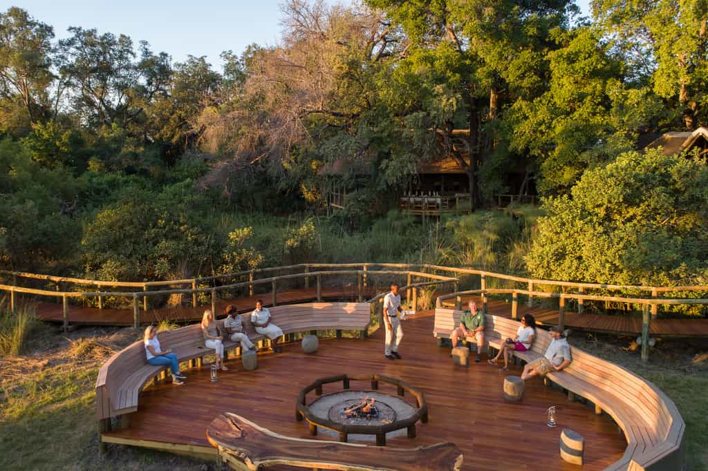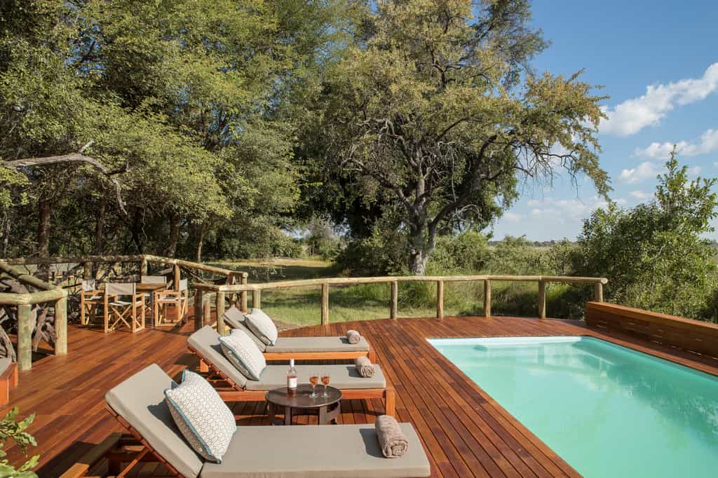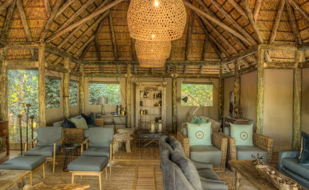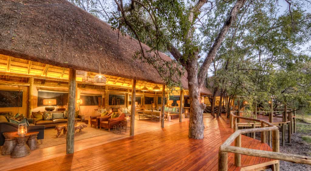 The best part about the main area is the viewing deck that looks westwards over the Xakanaxa Lagoon - a perfect spot for a sundowner! There's also a secluded swimming pool nearby, nestled in the surrounding bush. The elevated lounge and sunken bar has several comfy couches an an impressively high thatch roof. The day's feasting happens either in the thatched boma or under the canopy of jackalberry trees in the dining room. The main area is surrounded by some beautifully manicured lawns and an expansive sense of space.