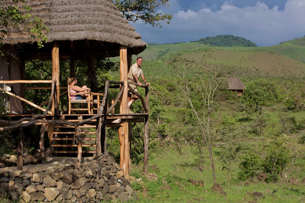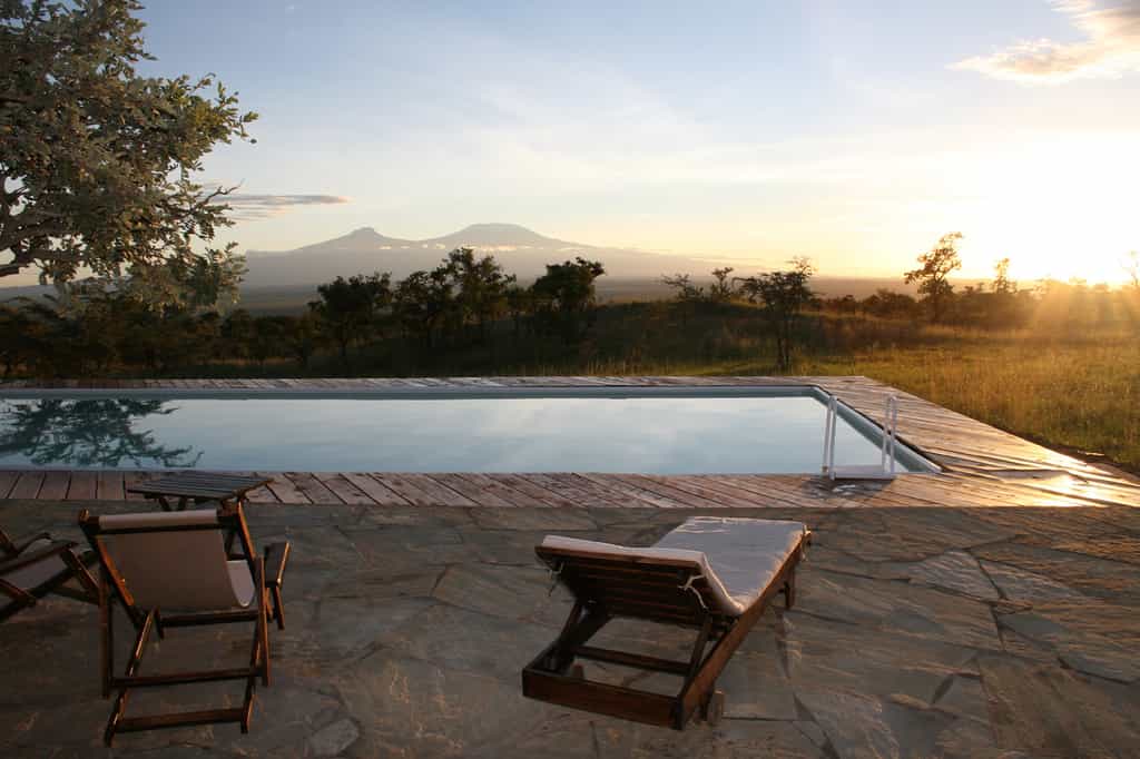 There are six tented cottages, each named for the hill it faces – Chyulu, Olenyo Waite, etc. All have hardwood floors, Persian rugs, beds you'll sleep well in, full en-suite bathroom and private veranda. The Hemingway and Simba tented suites have the best views of the camp's watering hole – watch zebra, giraffe and lion slaking their thirst while you do the same on your veranda. Travelling in a larger group? Kanzi House accommodates up to 10 people, with private dining, your own staff, a pool, pool cottage, fire pit and view of Kili.