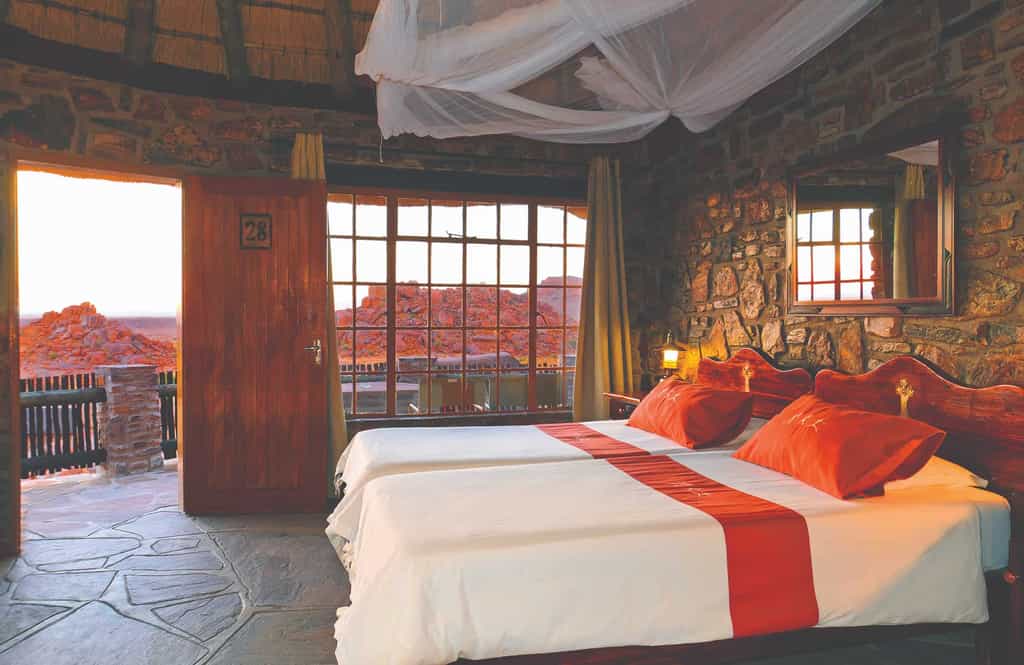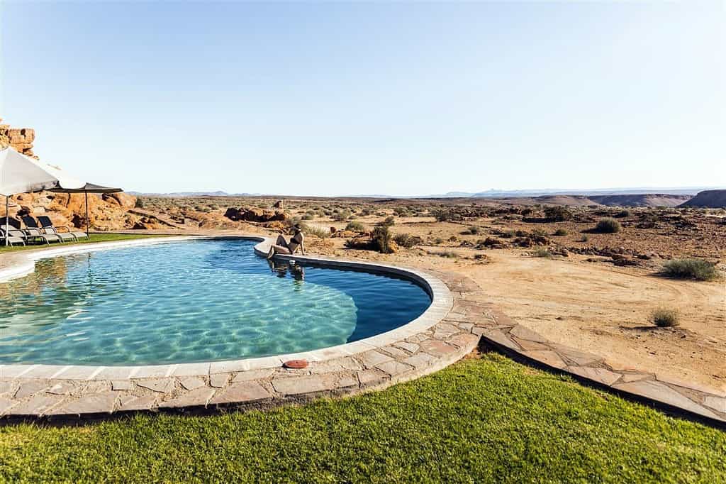 Between lazy days by the pool, long lunches and reading your book on your private patio you can take a guided tour to the Fish River Canyon or get adventurous and travel along the canyon floor on a three to four day canyon trail. If you’ve got a 4 x 4 head along Wildebeest Drive for stunning views and plains game. Hike the rocky hills behind the lodge for sunset or get a greater vantage point on the lodge’s pre-arranged sunset drive.