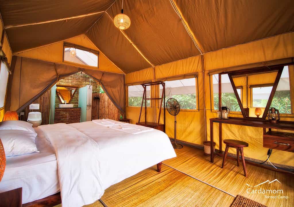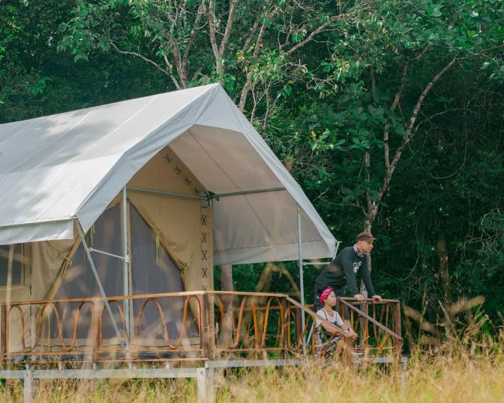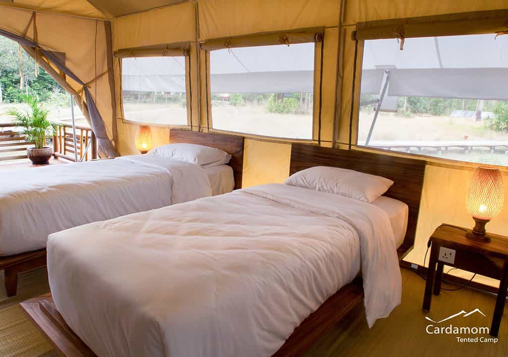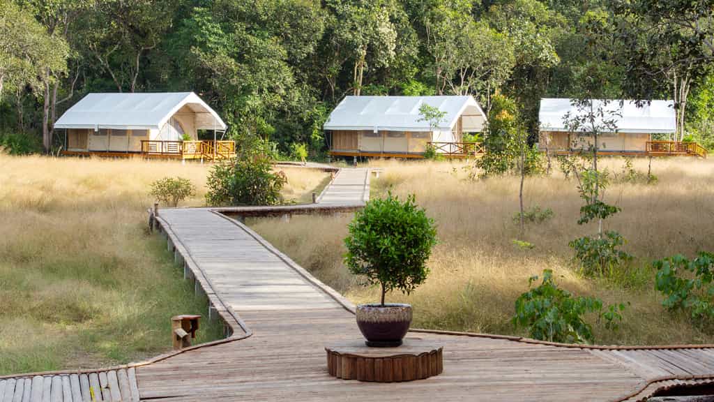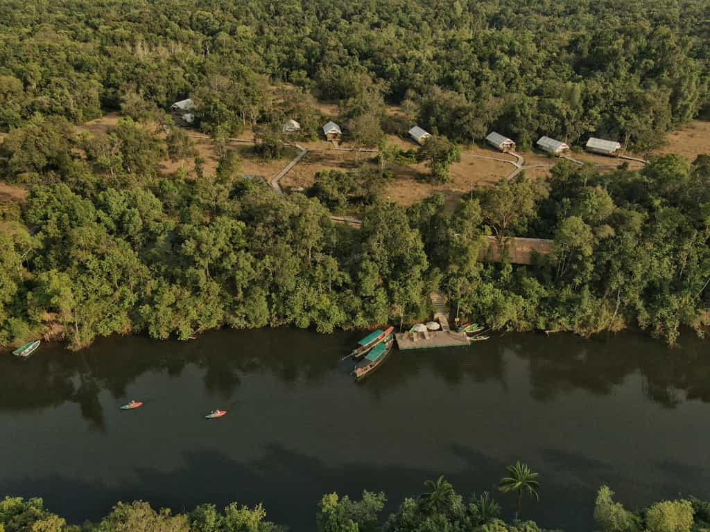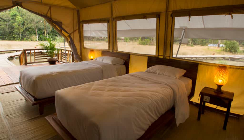 Along wooden walkways, there are just nine canvas tents on stilts - not to worry, they're mosquito-proof. True to form, the camp keeps things simple with little extra decor but the beds are superb and the bamboo showers are piping hot (the toilets are rather rustic). Large mesh windows let in plenty of light and other amenities include a fan, tea/coffee facilities and built-in USB charging ports. In between jaunts into the forest, you may find yourself on the private terrace, eyes peeled for a kingfisher sighting.
