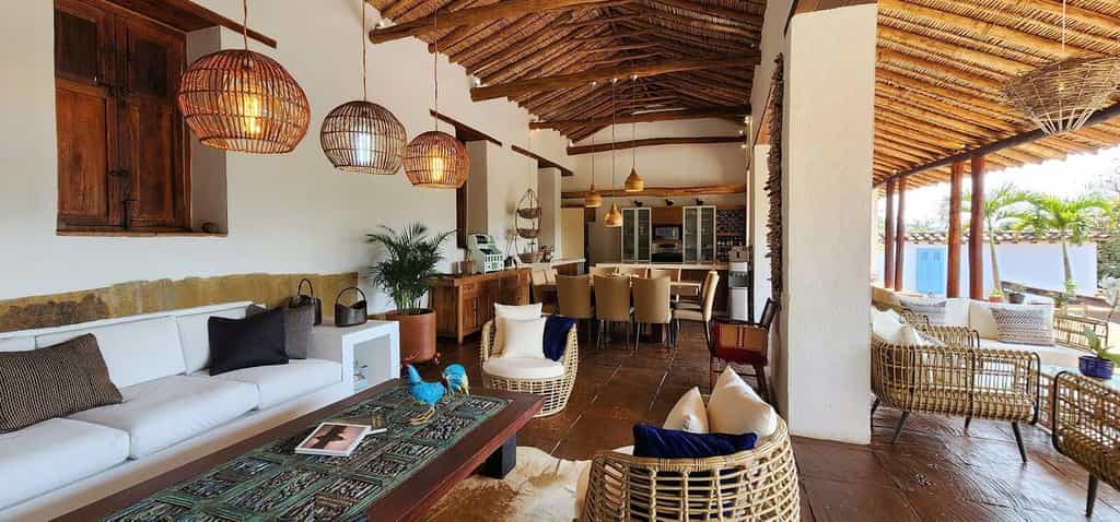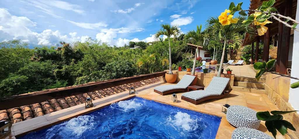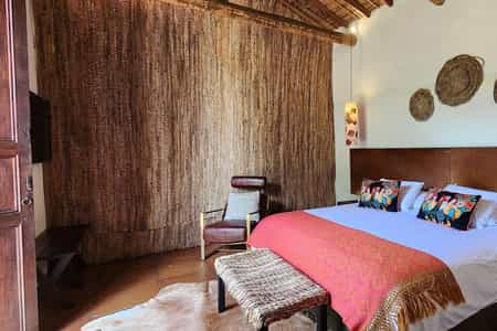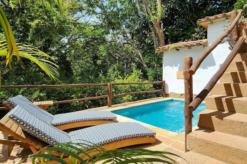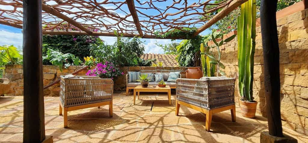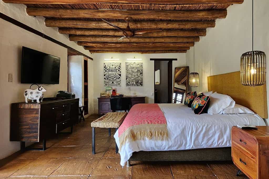 There are just four rooms, all with exposed brickwork, gnarled ceiling beams, and flagstone floors. The king-sized beds are large with colourful linens and finely-carved headboards, while the rest of the room is dotted with antique furnishings. Bedrooms range in size with the Aratoca or Chicamocha suites being the largest. The former is part of the original 19th-century house and has an outdoor shower, while Chicamocha has its own terrace and plunge pool. All have aircon, wifi and a minibar.