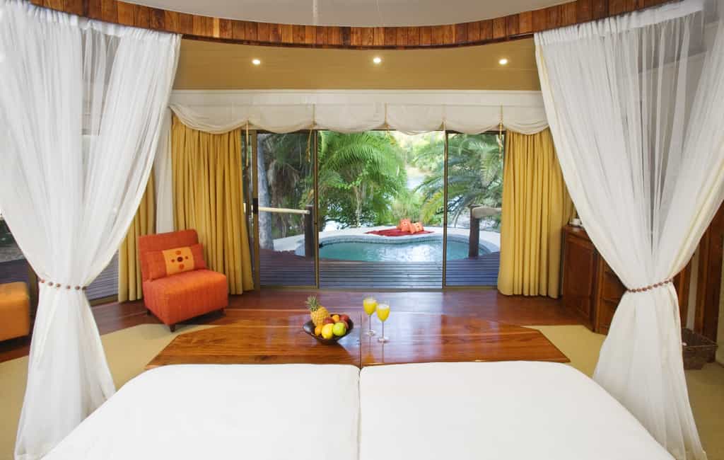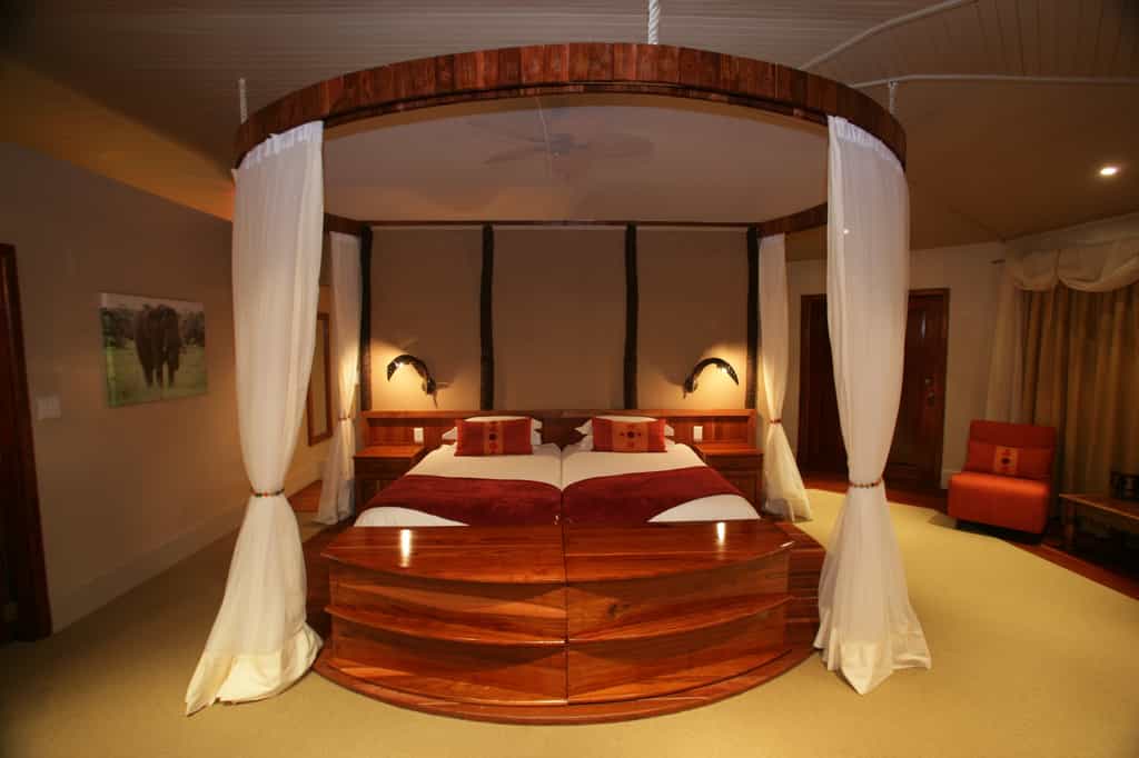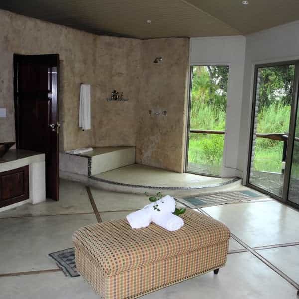 Linked to the boat dock by a bridge, Cascade island (formerly Ntwala Island) Lodge is a little slice of paradise. In its main area is a chic-but-casual open-plan lounge with several comfortable sofas offering a front-row view of the river, and a dining area that opens on to a large deck with a swimming pool overlooking the Mambova Rapids. A maze of floating walkways and bridges link this island with others in the rapids – crossing them is a thrill.