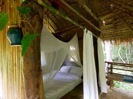 The communal areas exude a homely charm, blending seamlessly into the surroundings. From the open-air restaurant overlooking the river to cozy lounges adorned with local crafts, every space invites you to relax and connect. It's where you share stories over bonfires and where the boundary between you and nature blurs.