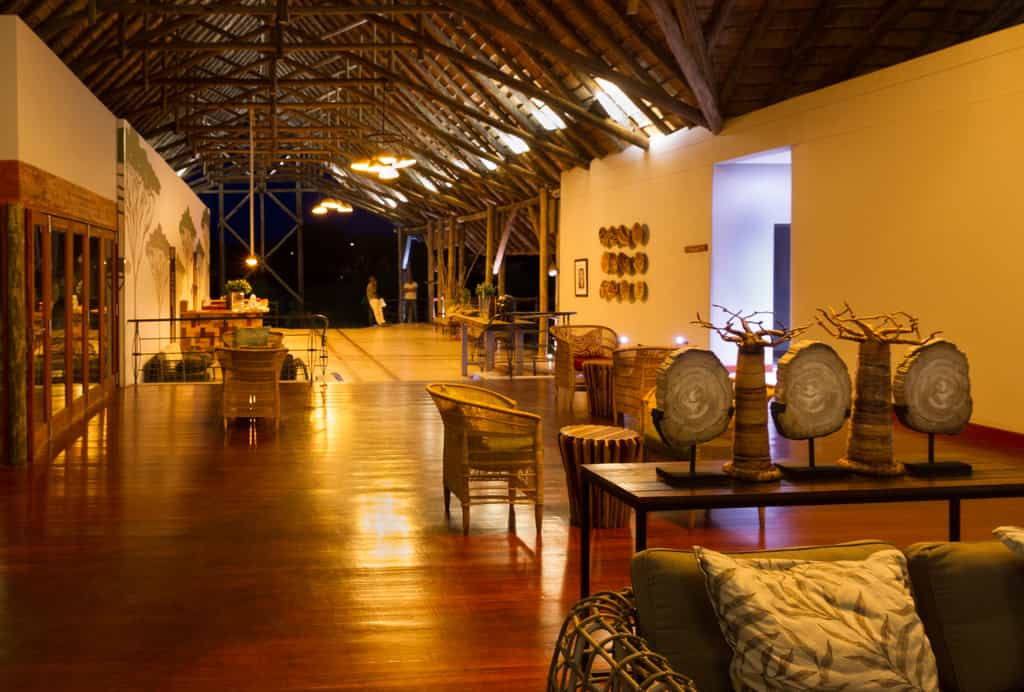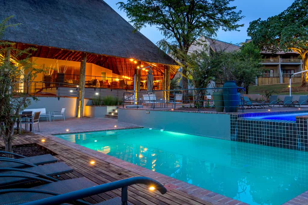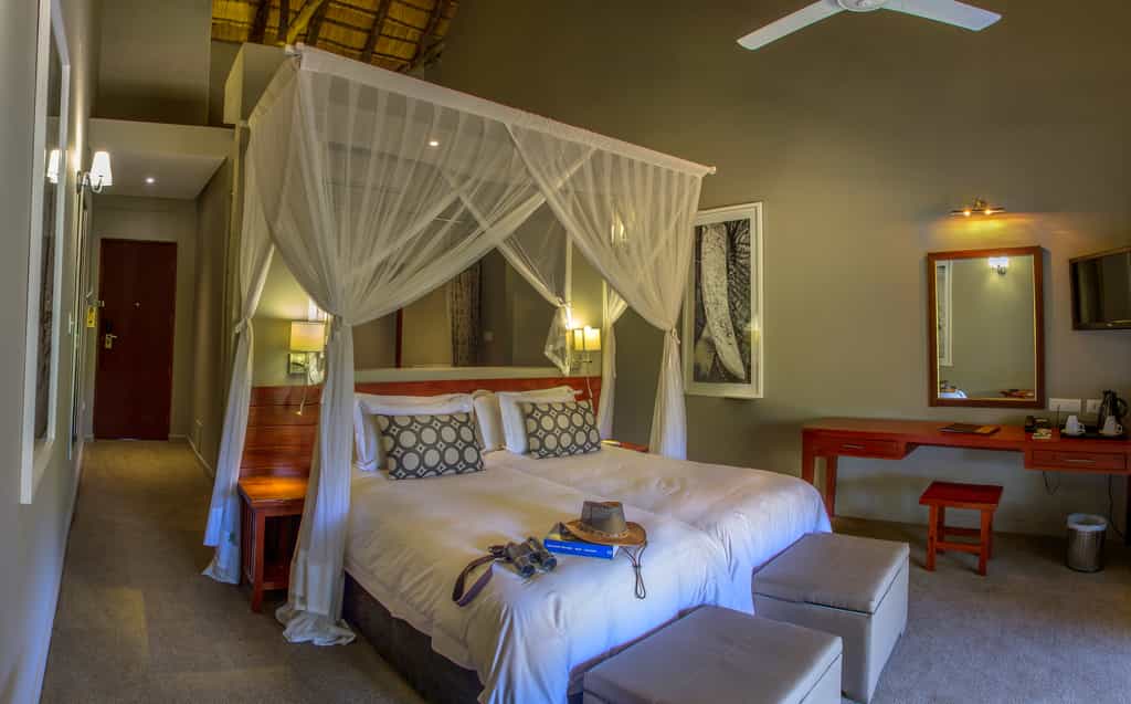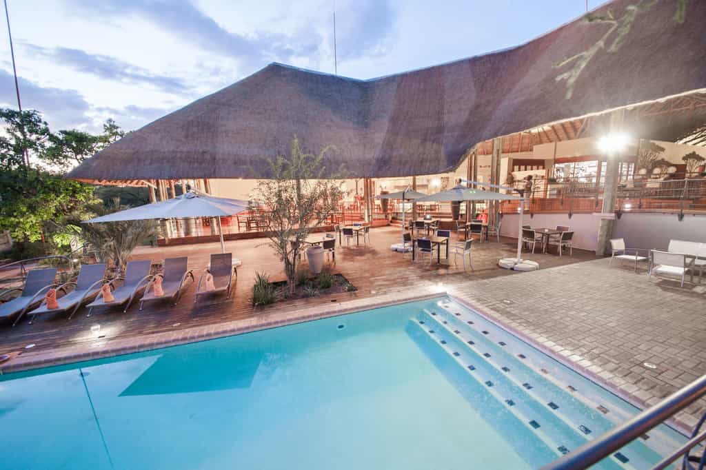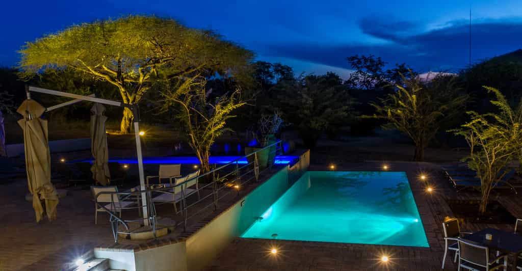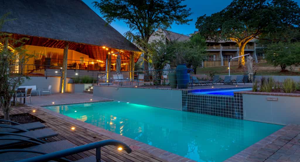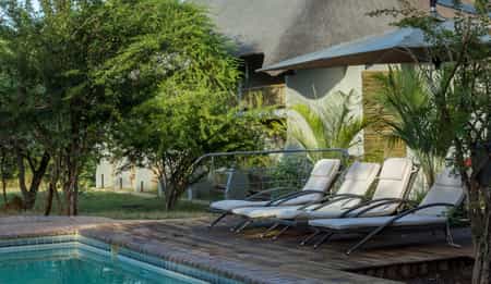 It all happens beneath the expansive peaked thatch of the main area, impressively constructed and furnished with ample seating. You'll find various restaurant and bar options and a convivial atmosphere of fellow travellers waiting to share a drink and a story. Find a generous early morning buffet breakfast before your day of adventuring; dine on the international al la carte menu for lunch and dinner. Baboons, warthogs and mongoose may be seen at any time. The large pool is a welcomed reprieve from the midday heat.