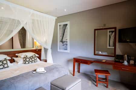 Rooms are comfortable and just shy of luxurious, although after a dusty day in the bush the en-suite bathroom with deep bathtub feels perfectly sumptuous. With an open-plan design, each room is appointed with convenient amenities, including a tea and coffee station, air-conditioning and TV. Enjoy the fresh air and distant view of the Chobe River from your terrace, or watch the wildlife wander onto the lodge grounds. You will have everything you need and nothing you don't.