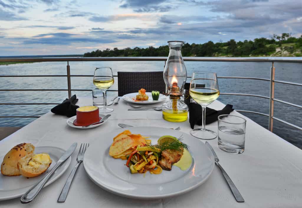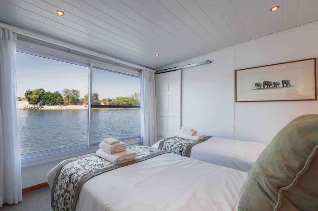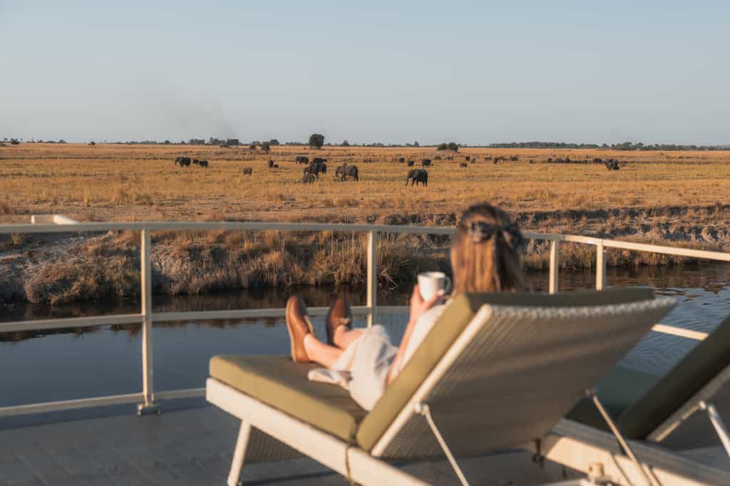Besides taking in the sweep of views from the decks, there are a few activities on offer. The tender boats are always ready to get you close to sightings along the riverbank – perfect if you've spotted something from afar, or to photograph some of the 400-plus bird species. Fishing for tigers or bream provides a bit of sporting fun. Otherwise, seeking out a new spot in which to enjoy your sundowner is indeed activity enough.