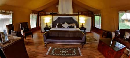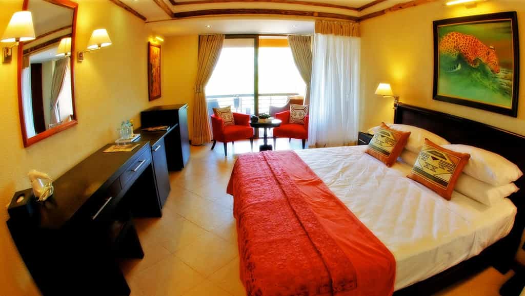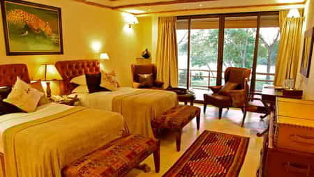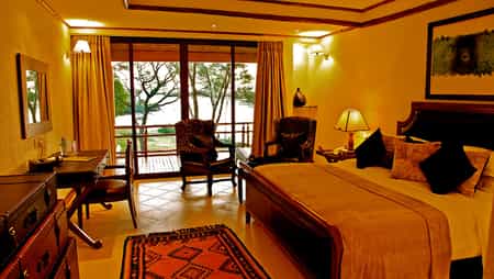 Chobe Safari Lodge has 36 elegant guest rooms, 21 luxury tents, four suites and a Presidential Cottage, all carefully designed with balconies and terraces with magnificent sweeping views of the wilderness or the tumbling Nile. Even the three-tier swimming pool has panoramic river views. The rooms are large and comfortable, with dark wood furniture, a quiet decor and en-suite bathrooms. The service is very good.