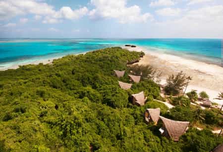 The palm-thatched main areas are perched right on the edge of the beach, overlooking the azure ocean. At night, you will dine on wonderful open-air terraces while gazing over the Indian Ocean, as it twinkles for miles under a blanket of stars. The food served at the restaurant is fantastic, with a mixture of Zanzibari, Arabic, Indian and African cuisines.
