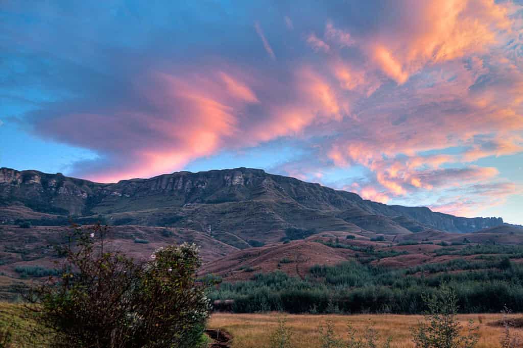 Cleopatra Mountain Farmhouse nestles in the beautiful Kamberg region of the KwaZulu-Natal Midlands, set on 202 hectares of rolling hills at the foot of the Drakensberg mountains. It is owned and run by Richard and Mouse Poynton, whose many years of experience, passion for cooking and flair for ingenuity have created a rare experience in this serene mountain setting. You'll be welcomed warmly, stay in idyllic accommodation, walk in the mountains, wallow in the silence far from traffic and meetings, enjoy seven-course dinners and be pampered in the spa. Just gaze at the view and feel the tension dissolve.