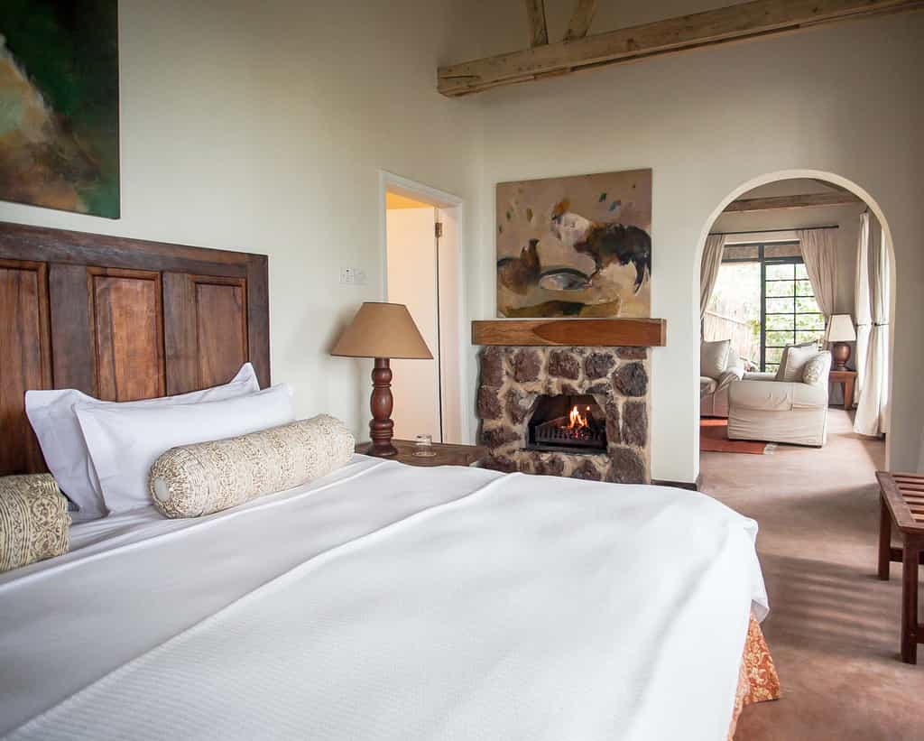 In keeping with the rest of the lodge, the eight cottages are pretty stone builds, dotted around the gardens. Each has a bedroom (the family cottages have two), linked by a very welcome fireplace to the lounge area, and an ensuite bathroom. You’ll find over-stuffed and incredibly comfortable armchairs, enormous beds draped in cosy duvets, private patios and floor to ceiling windows to make sure you never miss out on the view. And the ultimate luxury? A personal butler to look after your every need.