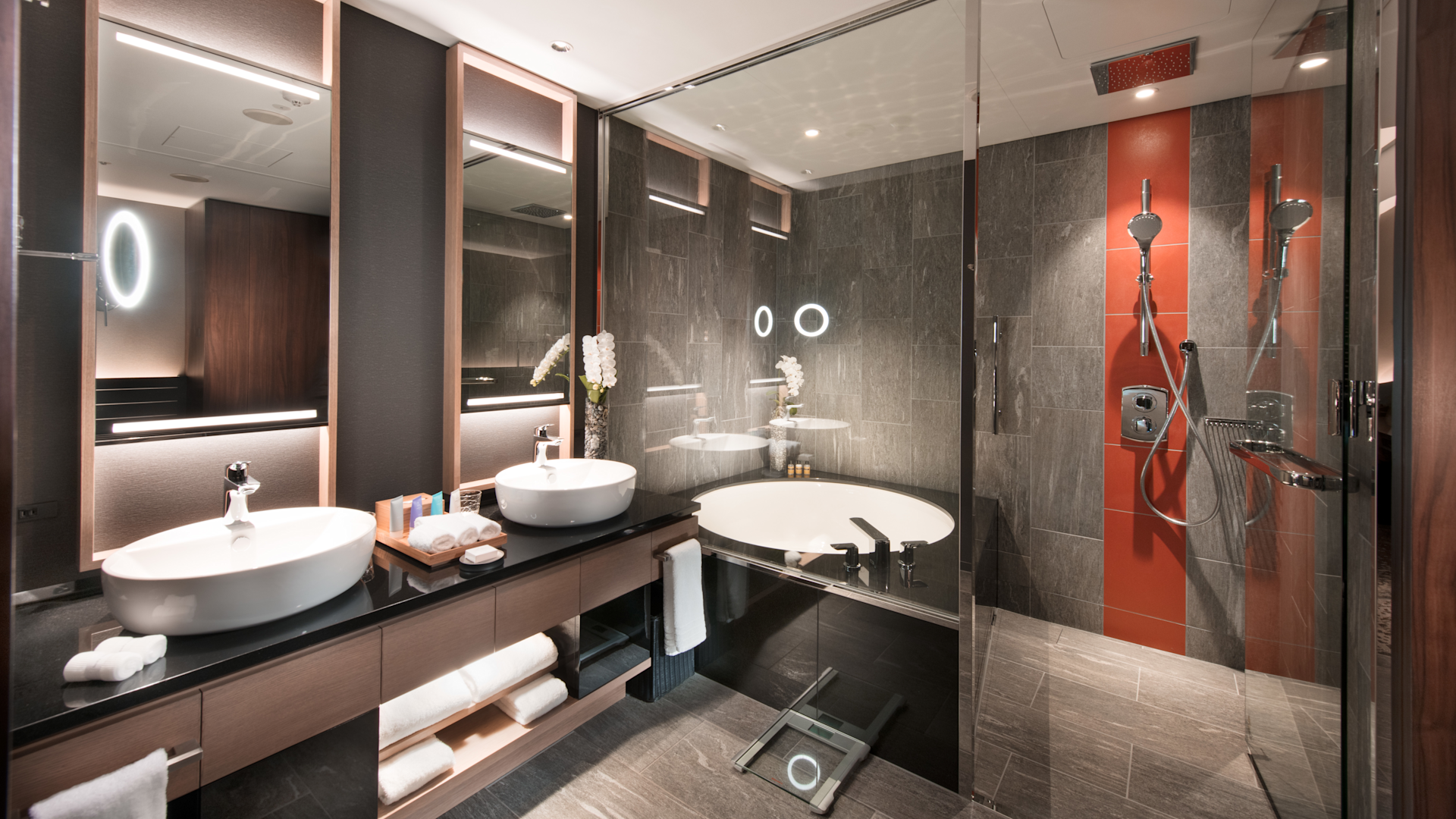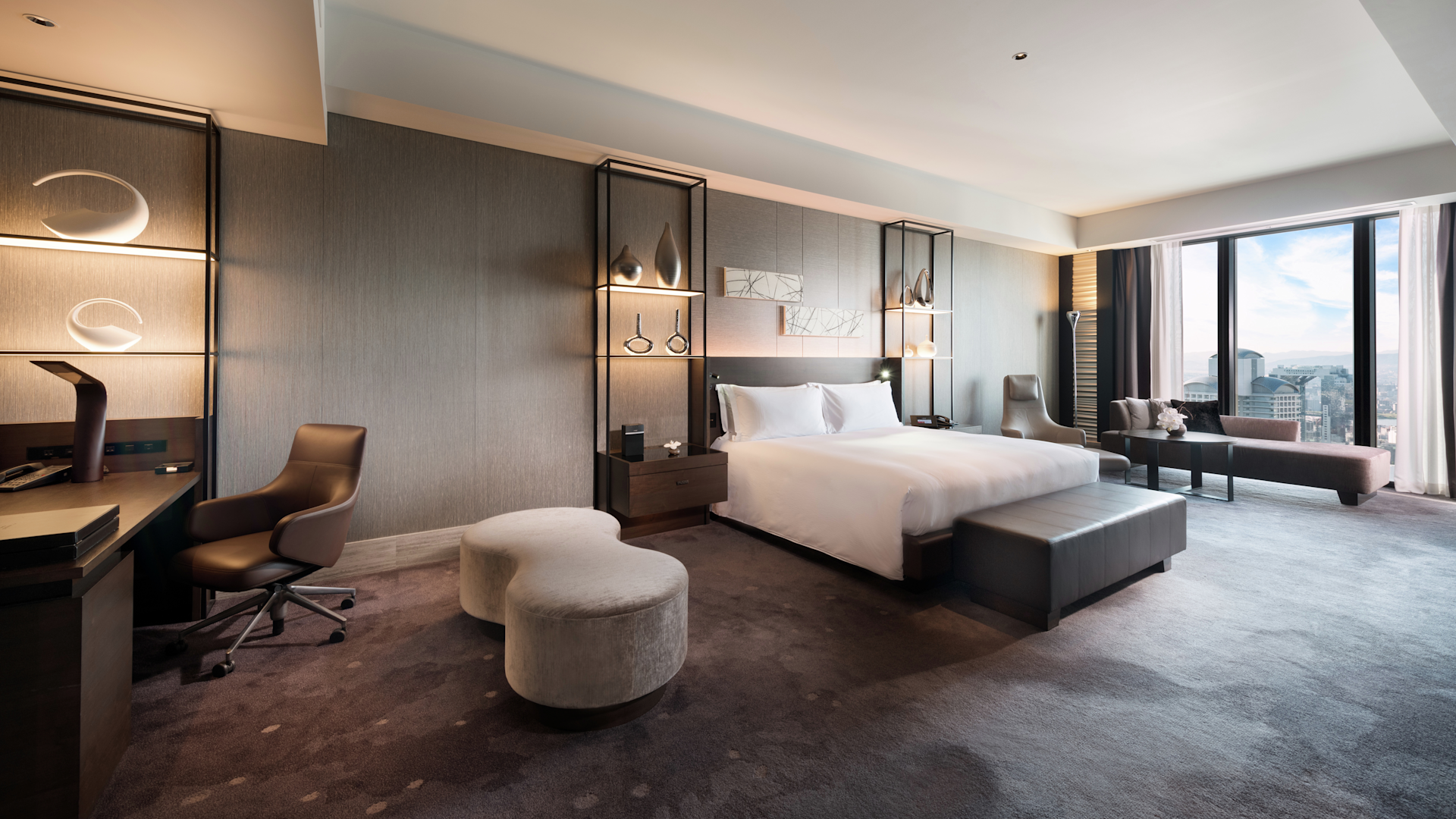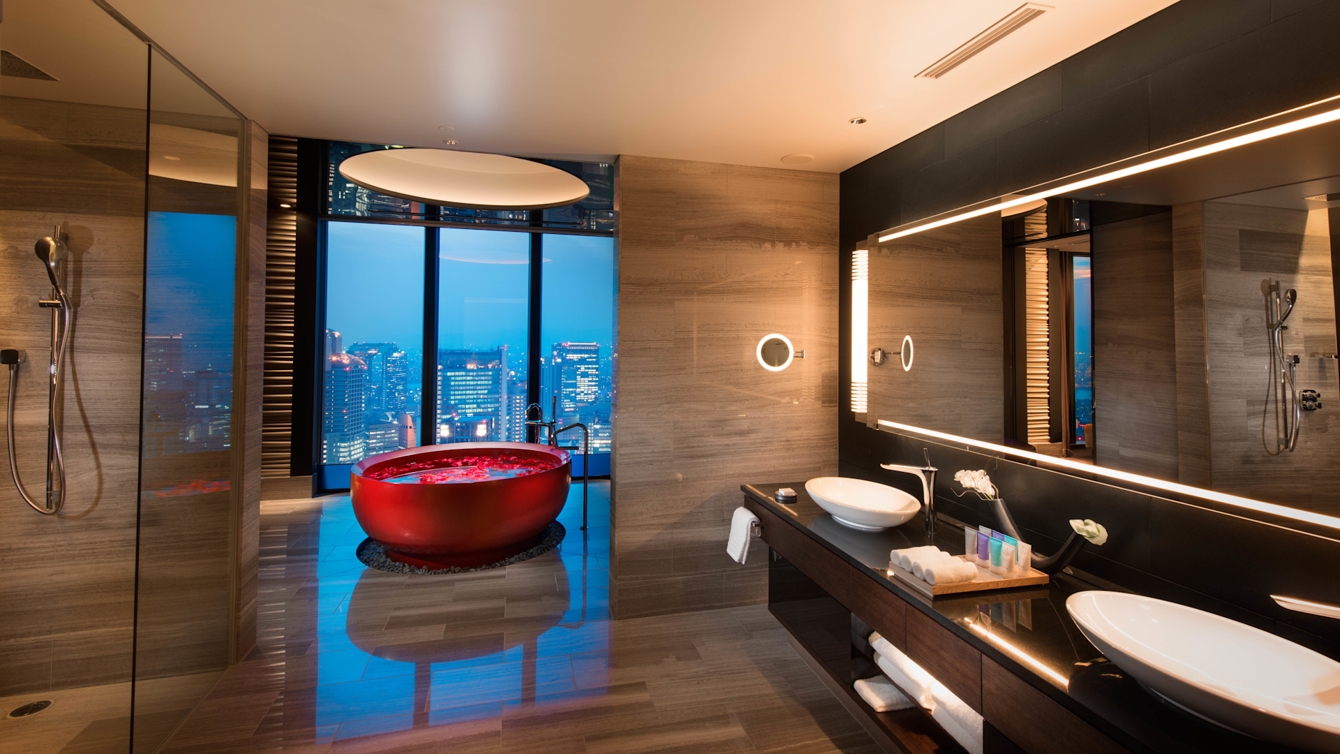 Blending Japanese aesthetics with an edgy flair, the rooms at the Conrad are smooth as silk with soothing, neutral tones, mood lighting and oodles of plush furnishings. Each room enjoys a view of the city through floor-to-ceiling windows — the blackout curtains are controlled by a bedside tablet — but some rooms are much larger with a separate lounge and walk-in closet. The Conrad Penthouse is the grandest at 2,368-square-feet, complete with a dining and bar area, and the show-stopping scarlet, circular bathtub.