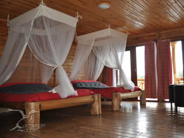 Sloped pathways lead to the accommodation – just 16 guests can stay at a time, in twin or double rooms, or in the VIP cabin which is perfect for honeymooners. The rooms are simply decorated, with wood predominating, and have large netted beds, a TV, an en-suite bathroom with a bath or shower and flushing toilet, and magnificent views. Opt for the VIP cabin for incredible sightings of the fiery crater of Nyiragongo Volcano in neighbouring Congo.
