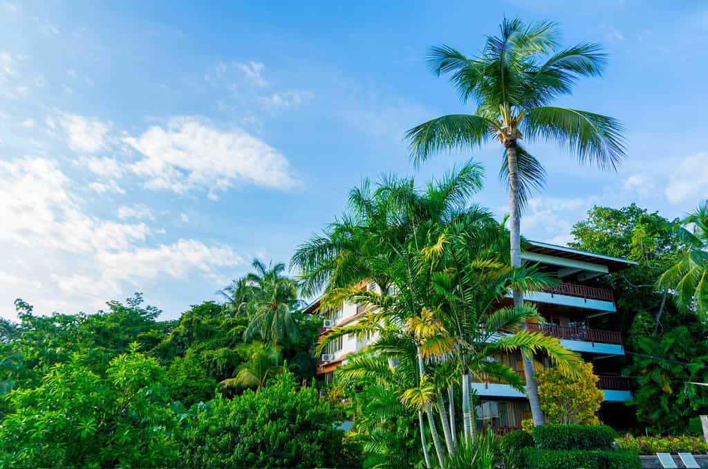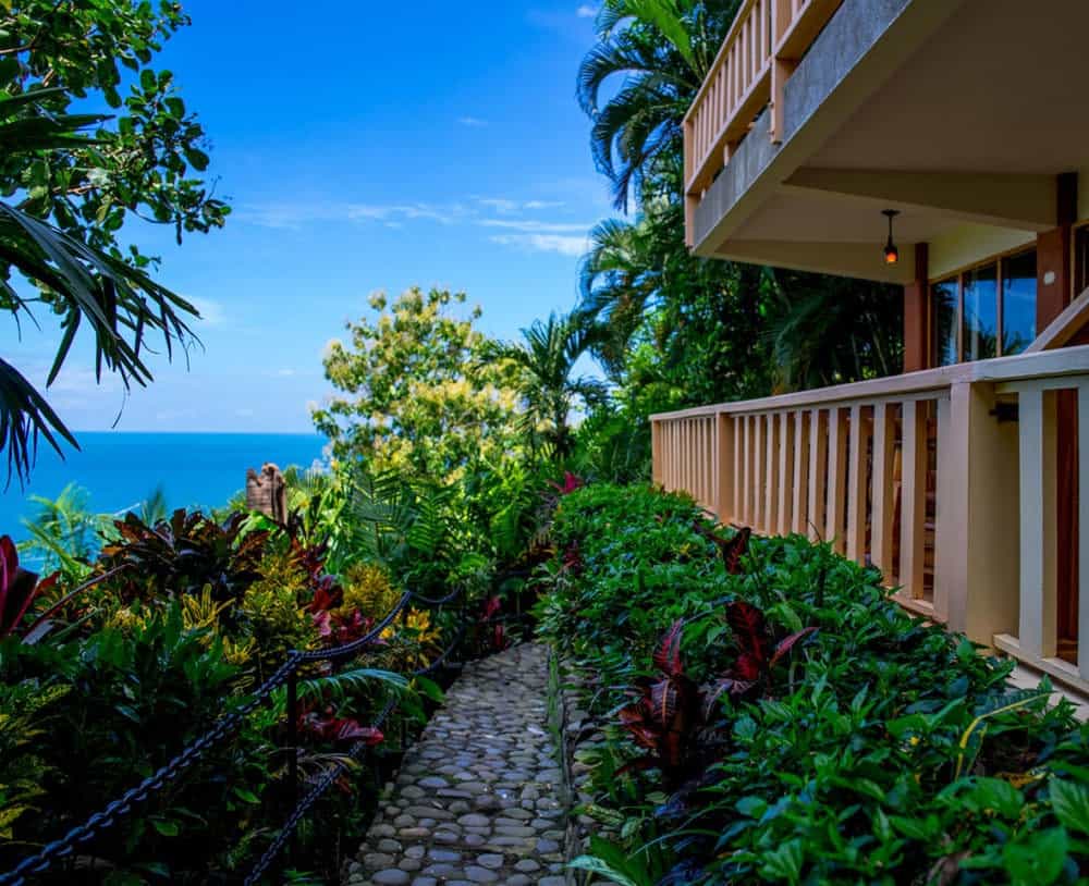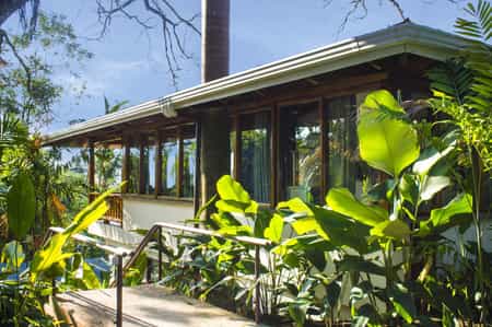The resort has a variety of places to stay, from rooms to three-bedroom houses, each boasting views of the coast and rainforest from the private balconies. There are two blocks of studios and rooms featuring a Balinese style and kitchenette, one with an adults-only pool and another with a more family-friendly environment. The most interesting accommodations are set in refurbished teak-panelled planes. These include the two-bedroom 727 Fuselage Home, which emerges from the jungle on a 50-foot pedestal, the Cockpit Cottage, and Cockpit Cabana, where guests can enjoy a soak in the outdoor tub and 180° ocean views.