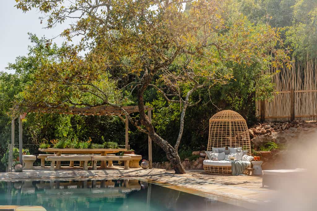 At the core of this sustainably designed home is a large living room, dining room and 'wow-worthy' viewing deck. The old-world safari touches feel authentic, tastefully woven together with modern lines and convenient amenities. The dining room has one long table, often set for more formal meals, and outside, overlooking the tree canopy and the rim-flow pool, is another table where brunches and lunches can be savoured. There are plenty of places to laze - near the fireplace, in a cozy corner of the garden or on the deck. For connection to the outside world, WiFi and satellite TV are available.