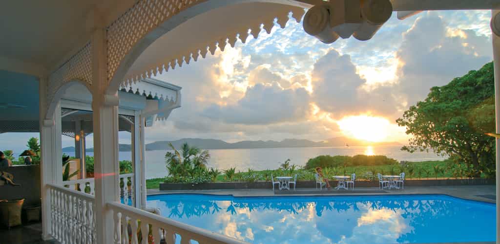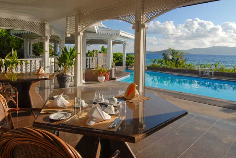 The communal Pavilion, with its deeply shaded veranda leading to a large pool, has views across the water to the neighbouring islands. There's a bar, a well-stocked library and an airy lounge and restaurant. The cuisine is five star, with the chef consulting you daily with queries and suggestions about the dishes you'd prefer.