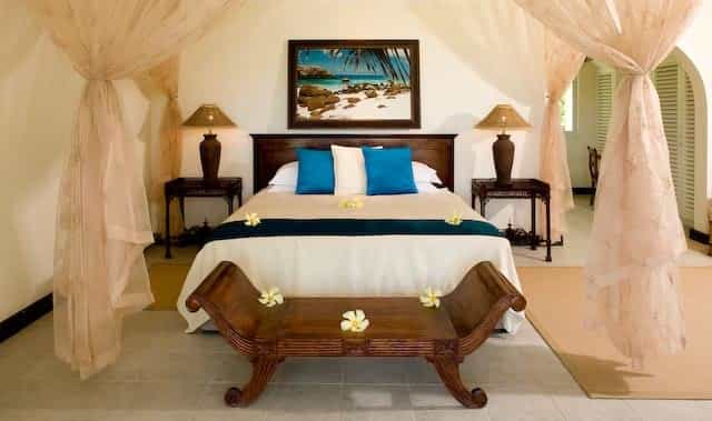 With just four private villas and the stately Presidential Villa situated 30 metres from the beach, the guests (just 10 in total) have the island to themselves. The villas are spacious, elegantly furnished with hand-crafted pieces – large and comfortable beds and comfortable seating. The bathrooms are large and the verandas deep and shady – perfect for snoozing.